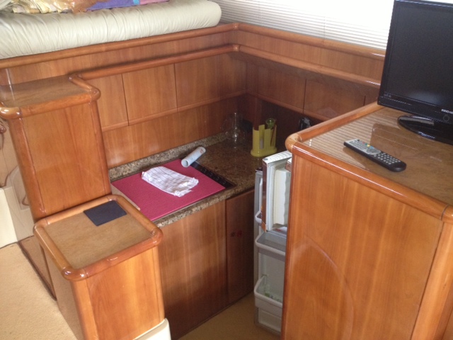 Notas internasCabinas de 1 master doble con armarios y cajones 1 camarote de invitados Vip con armario de cabina 1 persona con baño camas transformables 1 para el armador con ducha, wc eléctrico y tapicerÃa completa con espejo y baño de almacenamiento 1 con ducha eléctrica y aseo para invitados baja cocina: anafe eléctrico, horno microondas, nevera con congelador, conveniente estiba armarios cocina y cocina living comedor con mesa de madera, Sofás de cuero y comedor Finos gabinetes interiores brillo lacado suelo de madera y alfombras cortinas interior completa Notas de la instrumentaciónDoble con ojales VHF GPS Chart Plotter repetido en flybridge piloto automático registro velocÃmetro motor electrónico controles ecosonda timón completo ángulo motores conectados equipos vuelo Tv Lcd Tv en torno de salón estéreo radio estéreo sistema electro hidráulicoNotas de armamentoBow empuje hidraulica con control remoto aire acondicionado en cada habitación calefacción generador cargador reversible, fregadora con limpiaparabrisas, ancla w. plataforma de baño integrada de la cadena, nadar escalera, caliente y ducha de agua frÃa en las bombas de sentina automático eléctrico de cabina, aspersores, radio, tabla de cabina, cabina teca amortiguador terrazas toldos varia cubierta de ventana |