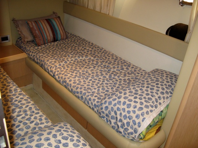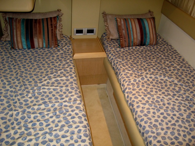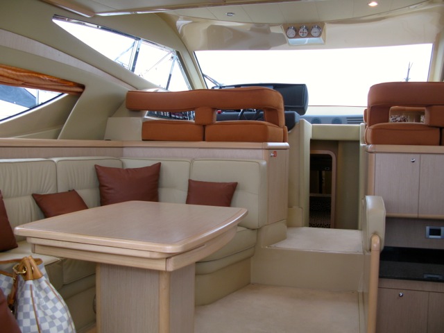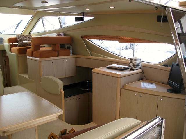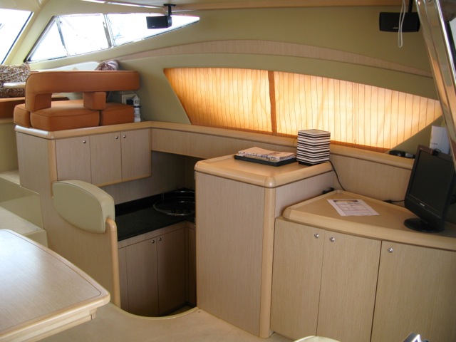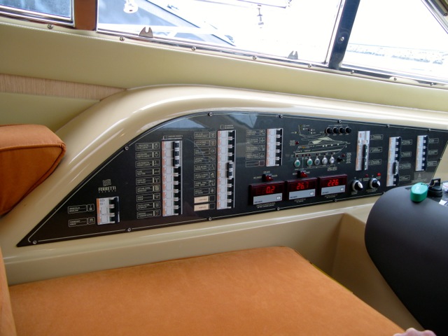 Notas internasDormitorio con cabina de armador con cama doble en proa y servicio dedicado, camarote con doble plano izquierda con izquierda camarote servicio dedicado con literas Notas de la instrumentaciónPiloto automático y FLY BRIDGE-RAYMARINE C120 en el tablero NAVIGATOR NAVIGATOR GEONAV 11 sol LCD COLOR oro TRIDATA RAYMARINE de VHF de mosca y FLY-BRIDGE con ECO, registros, TEMP. AGUA.Notas de armamentoBIMINI TOP en maniobras de marcha hacia adelante hélice-nevera y fregadero en móvil FLY-9 KW KOHLER negro generador agua tanque sistema toma agua FERRY PIER-vitrocerámica HOB-trastero con entrada NO de la plancha eléctrica del colector de aceite en las pantallas de la mosca a puerta-estores enrollables acero salón Stern nombre-reflector-MANUAL de cadena 100 M-todavÃa fresca agua TAP en la preparación de stern para aire acondicionado- |