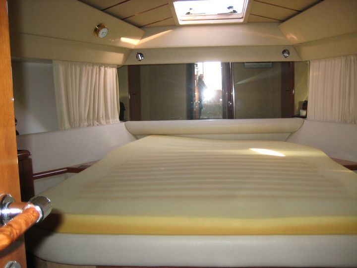 Notas internasDos cuartos de baño muy espaciosos y bien dispuestas con ducha. Bajado en la derecha cocina con vitrocerámica, nevera y congelador, encimera, armarios y áreas de almacenamiento de despensa. Doble comedor, Sofás de cuero, pulido ebanesteria cerezo en perfecto estado, suelos de madera y alfombras. Notas de la instrumentaciónEntretela doble completa instrumentación para la mosca: Gps plotter, piloto automático, sonda, radar, satélite, esposas de gas electrónico, aletas con indicador, registro, bidata, estéreoNotas de armamentohidraulica con control remoto aire acondicionado en cada termostatos calefacción generador ambiental independiente reversible, baterÃas, cargador, limpiaparabrisas con depurador, ancla w. cadena, plataforma de baño, escalera de baño integrado hélice/proa, caliente y frÃa ducha en cabina passerella idraulica, bombas de achique, aspersores, nevera doble, antena de TV vÃa satélite, radio c/d, tabla de cabina, cabina en teca mosca equipada con solarium tumbonas toldos completo repertorio cuadro ventana funda de cojÃn |