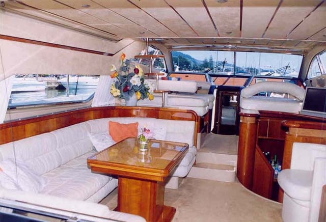 Notas internasuna cabina doble - dos cabinas con camas apartamento - dos cuartos de baño con ducha - sala de estar con sofá y mesa comedor frente a frente - cocina independiente con vitrocerámica, frigorÃfico y microondas - en madera de cerezo y el interior de Alcántara, sofás de la piel - la tripulación de cabina de pasajeros con el servicio.