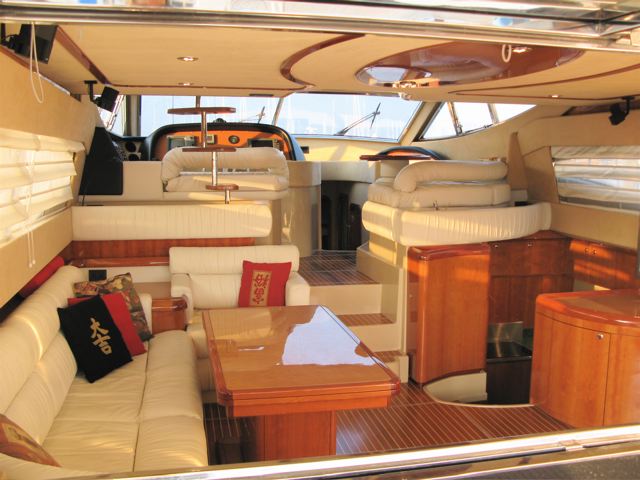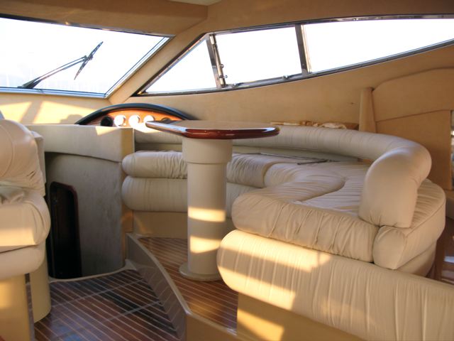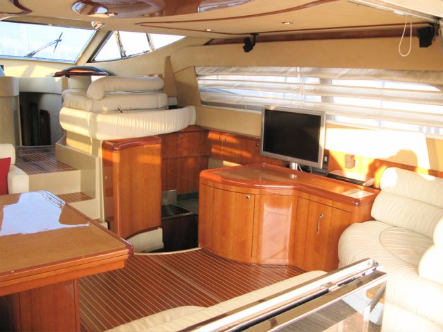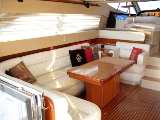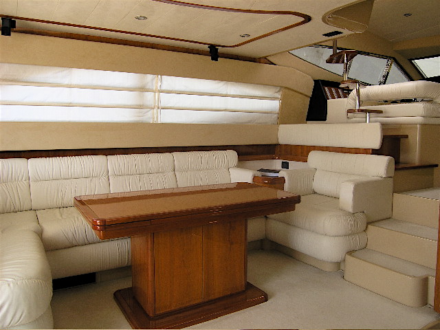 Notas internasGran salón con sofá para la "U" izquierda, derecha móvil con sillón de cuero como revestimientos de sofá principal de sofás son espacios de color beige de cuero de grano, todos los revestimientos de paredes y cubiertas de techo son en Alcántara (opcional) en la cocina de esquina derecha inferior con adyacentes la cabina marinero con bagnon separado (o cualquier galera), acceso a la cabina de marinero y ' direttaemente de la cocinaen el exterior (con entrada de cabina) hay una segunda cabina marinero muy conveniente para una eventual trastero. Piso inferior del piso inferior o dormir con corredor central y cabina doble a propietario de barco de centro con grandes ojos de buey y un amplio cuarto de baño con ducha, wc y bidet, arco doble cabina VIP con servicio dedicado para la cabina del lado derecho con 2 camas en el servicio, terminar plan con las esencias de mobiliario interno en Cherry con brillanteTabla de Cherry Hall, tramo brillante en ambos lados (grandes) todos de madera de pisos paneles habitaciones con comentarios de luz Arce, verde mármol superior cocina (opcional), pisos de madera baño con acabado brillante y el logotipo de Ferretti (opcional)