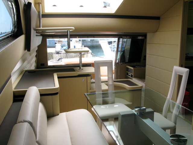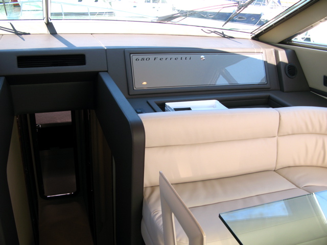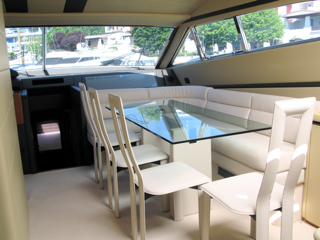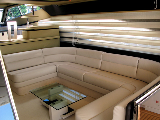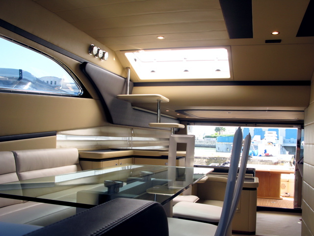 Notas internasDormir el área con armador sin cita recámaras con baño y ducha, cabina de izquierda invitado con piso de doble y un baño con ducha, cabina de derecho invitado con literas, cabina Vip en el arco con baño y ducha Notas de la instrumentaciónRadar de Furuno x nr 2, en el guión para Navigator, color de Furuno GD al modelo de eco en 1920, Raytheon ST 60 Tridata en mosca, Geonav 11 color LCD chartplotter, software de asignación de VHF Eye4gps GPS, gracias a la RS8000 digitalNotas de armamentoACCESSORI OPTIONALS PRESENTI A BORDO:ARIA CONDIZIONATA SALONE E CABINE + 2 CABINE MARINAIO - GENERATORE PRINCIPALE 16 KW - GENERATORE AUSILIARIO 9 KW - ELICA DI MANOVRA A PRUA - ELICA DI MANOVRA A POPPA - ANTENNA TV SAT NAVISYSTEM NR 55 CON RICEVITORE IN SALONE - NAVIGATOR FURUNO GD 1920 IN PLANCIA - RADAR CON DISPLAY FURUNO GD 1920 - ECOSCANDAGLIO FURUNO - BIMINI TOP IN ACCIAO INOX SUL FLY - TV 37 SAMSUNG IN SALONE CON SALISCENDI - DIVANI INTERNI IN MOVER NUVOLA - TAVOLO PRANZO IN CRISTALLO E PELLE - TAVOLO FUMO IN CRISTALLO E PELLE - MOSAICO NEI BAGNI BISAZZA - INVERTER MASTERVOLT 24V 3000W - NR. 2 ANCORE BRUECE 50 KG - CHAISE LOUNGUE PRENDISOLE SUL FLY - TAVOLO POZZETTO ESTENSIBILE IN TEAK CON POLTRONCINE - NORVEGESE PER CHIUSURA POZZETTO - CONTACATENA DIGITALE - SCALA BAGNO ELETTRICA - LAVASCIUGA IN ZONA EQUIPAGGIO - DISSALATORE IDROMAR 120 LT/H - FILTRI GASOLIO DOPPI CON BY-PASS - GRUETTA DI SOLLEVAMENTO TENDER SUL FLY PORTATA 400 KG - Sull'imbarcazione sono stati eseguiti i seguenti lavori di refitting in data Marzo 2011: Sostituzione di tutte le cuscinerie esterne dei divani pozzetto e schienale, divano tavolo fly e schienale, chaise loungue fly, prendisole fly e prendisole di prua, sostituzione di tutti i vetri/deflettori del fly con deflettori nuovi, lucidatura completa imbarcazione, sostituzione di tutte le batterie. Eliminazione del rosone in ciliegio soffitto salone con rifacimento completo di tutto il cielo con motivo in pelle chiara e scura e sostituzione di tutti i faretti del salone e cabine, rivestimento con cartelle in mover beige di tutto il salone e parete esterna cucina, rivestimento in Mover testa di moro di tutte le mantovane del salone, eliminazione delle due poltroncine a sinistra nel salone con creazione di un nuovo divanetto 3 posti con mobile e cantinetta dedicata, nella parte posteriore del divanetto e' stato inserito il saliscendi TV elettrico con TV LCD LED HD Samsung 37", sostituzione del divano salone con divano nuovo in Mover Nuvola, sostituzione del divano pranzo in Mover Nuvola, sostituzione di tutta le pelle del cruscotto e plancia con Mover Testa di moro, sostituzione di tutte le maniglie porte cabine e bagni con elementi Sector di Olivari, rifacimento completo di tutti i testa letto delle cabine, con eliminazione rosone sopra letto cabina armatore, coperture con cartelle in Mover di tutte le parti in ciliegio cabine, rivestimento dei giro-letti delle cabine con tessuto marrone e pelle, sostituzione di tutte le luci apliques lettura cabine, sostituzione di tutta la moquette del salone, zona pranzo e plancia, cabina amatore corridoio e cabine ospiti con modello Loop 620, eliminazione dei separatori in ciliegio cartelle cielini sala pranzo (sono stati interamente rivestiti in Mover scuro) pulitura tende doppie a pacchetto salone e sala pranzo, pavimento cucina in tessuto "Tatami". |