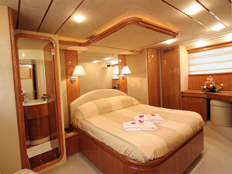 Notas internasLas cabañas son 4, con una cabina de completo de la viga principal en el centro del barco con su propio cuarto de baño muy grande con cabina de ducha separada.Continuando hacia la proa se desarrollan dos cabinas con camas y la otra con dos literas con baño grande.En el arco es la cabina Vip con cama doble penÃnsula con baño propio con ducha separada. También la calidad de los espacios al aire libre, de vivir en la cabina a la terraza del arco con una mosca en gran parte dedicada a los amantes del sol, que encontrará amplias cojines y una zona de estar con wetbar Notas de la instrumentaciónDoble interfaz instrumentos electrónicos para la mosca: Gps plotter, piloto automático, tridata, sonda, vhf, brújula electrónico gas esposas, aletas con indicadorNotas de armamento-Aire acondicionado F/c en todos ambientes-generador 16 kw Kholer-retrovisor vidrio-desvÃo hélice-proa popa maniobra Eilca-Bimini top fly-interno esencias Matt cereza mesa de comedor sillas-cuero-cuero sofás-120 lt/h desalinizadora nuevo 2012-32 lcd TV con altibajos en el salón-combeo cabrestante en cabina-teak deck-lavados/seca-- |