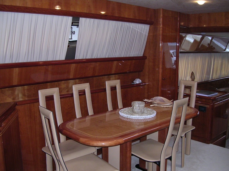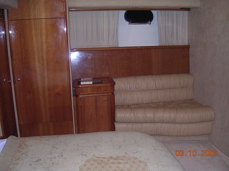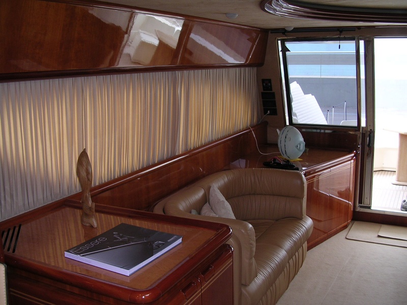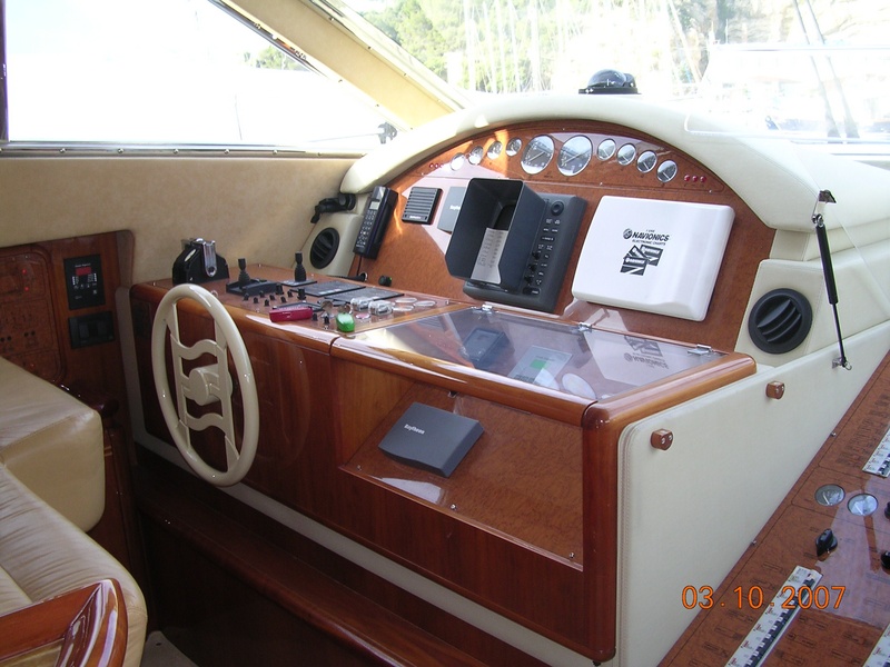 Notas internasducha, estéreo; salón con sofás, nevera, sofá con mesa de café, estéreo Sony Radio CD y cassette, TV a color y VCR Trinitron; comedor, cocina con puerta equipada con vitrocerámica electrónica de cocina, horno, nevera, doble fregadero acero inoxidable congelador, agua dulce y salada. Aire acondicionado, bombeo, Condaria 2 grupos en todas las ubicaciones. Tripulación: N ° 1 cabina popa comandante seis, con una cama y un armario, N ° 1cabina de popa dx 2 superpuestas camas, baño con wc (por la borda vertido directo), lavaboe ducha, aire acondicionado, refrigerador. Sala de máquinas, arandela Zerovatt Lady trópico 420. Notas de la instrumentaciónNº 2 Autopilot ST Raitheon, N ° 2 7000 GPS chartplotters Geonav 11, N ° 2 Raytheon ST60 Tridata (prof.temp.vel.), Radar Furuno, medidor de Quick Silver Chain, brújula Urania, ángulo de timón...Dobles comandos internos y sobre la marcha.Horas de Nº 1 generador Koehler Kw. 8.0 n ° moto 772;Nº 1 generador 17,5 horas Koehler Kw. 654. N ° inverter.ice de 2carica de moto, baterÃas, fabricante de antena TV Glomex.Oscurecimiento cubierta de cristal. Notas de armamentoDulce y salado Autoclave Ramacciotti, moto Idromar watermaker 315, Passerella idraulica Besenzoni plegable teca y acero inoxidable con escalonados abajo para acceder al tablero de mandos por taquilla de popa, con control hidráulico, escalera de natación hidráulica en la tonneggi de popa, N ° 2 en la popa.Mesa de teca, Ice Maker, fijo popa fregadero agua dulce asiento, salado, frÃo y caliente. Teca en la cabina a proa fuera. MOSCA de armamento: ayuda comando abre electrónicamente, grúa puede llegar a 400 Kg máx., nevera, fregadero, mesa, sunsuit cuscineria + baño cojines, sofá, biminitop con estructura de acero. OTROS accesorios: propulsor de proa, popa hélice, electrónica esposas Corraro |