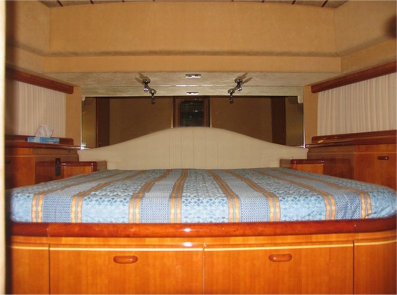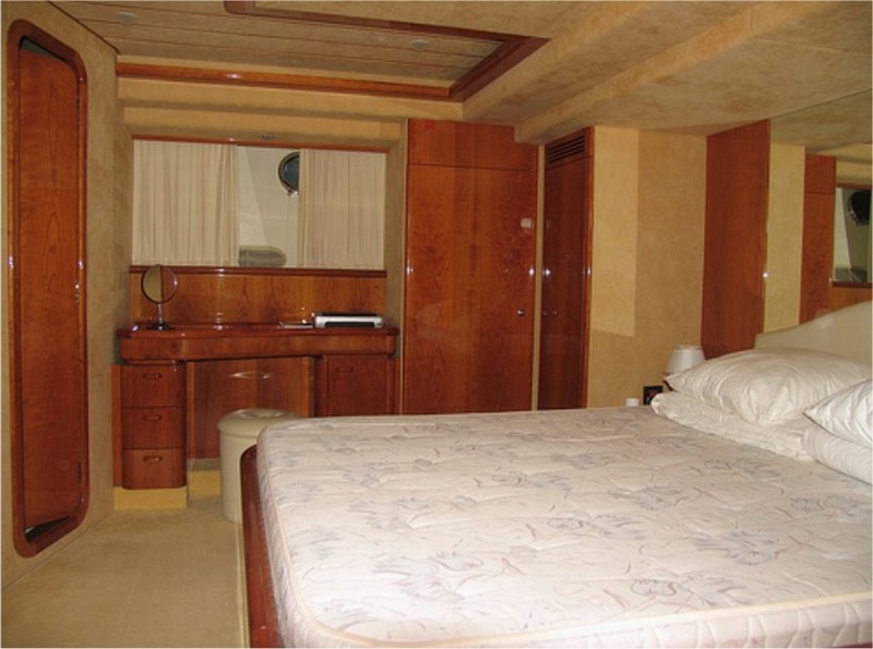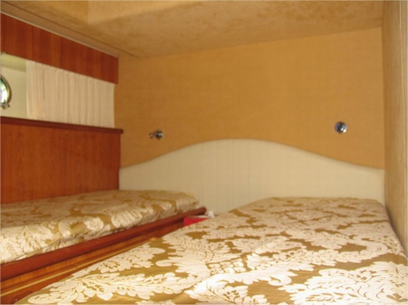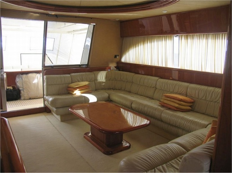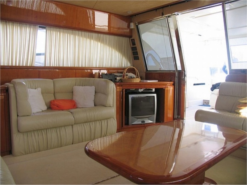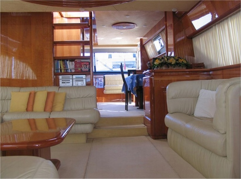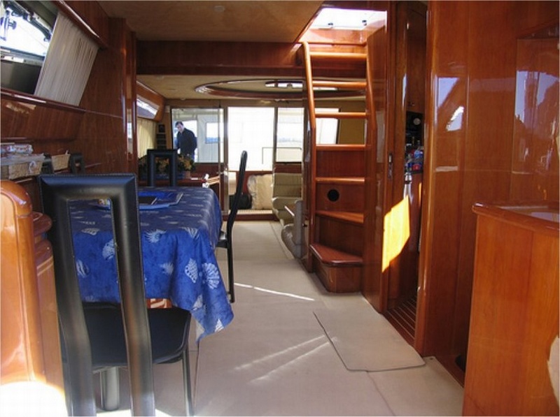Notas internascubierta: sala de estar con mesa de Ace sofá, muebles, frente a un sofá, en una cocina independiente con vitrocerámica, nevera / congelador, lavavajillas, horno multifunción, área de comedor con mesa y sillas, sofá, comedor con rueda y L piso inferior: Cama camarote principal y cuarto de baño con ducha separada - cabina VIP con cama doble, baño con ducha - dos cabinas con camas planas, cada uno con su propio baño con ducha. Tripulación: dos camarotes individuales con baño compartido. interior en madera de cerezo, sofás de cuero.
