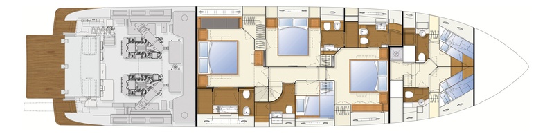 Notas internasEn la zona frontal de la maindeck es levantado el puente, a la derecha una mesa de desayuno cómodo o posiblemente para utilizar PC o correspondencia, más abajo de la cocina con frente cierre práctico como portilla de la privacidad, con acceso adyacente a Cabañas de la tripulación. En la cubierta inferior, cabañas, situados en la parte central del barco y de una sola planta, ofrecen espacios generosos y se iluminan por lluce natural. El armador es un haz de luz completa y coloca a popa, y un amplio baño y columna de ducha "sensual". Hacia la proa a la izquierda es una cabina VIP con cama de matrimonio convertible en dos camas y baño privado. A través de los comentarios de estribor cabina con litera donde cruzar a menos de un año y medio cuadrado, también con baño privado. En el arco es la cabina VIP con cama doble, dos armarios y baño privado. Notas de la instrumentaciónSISTEMA integrado de monitoreo IN-DASH pantalla en color con la página de administración de la pantalla táctil Gi8-Gi8 ojo de buey ' / Porte-monitoreo Gi8 antirrotación Gyro-Gi8 página de administración.Sistema de navegación 3D de NAVNET sistema RADAR multifunción y navegación navegador NAVNET 3D multifunción repetidor en FLYBRIDGE-sistema actualizar FURUNO NAVNET 3D. -DIGITAL cadena-GSM teléfono interfaz/voz/FAX-Resumen con ECONSCANDAGLIO de alarmas acústica y Visual Navnet sistema integrado Notas de armamentoACCESSORI INSTALLATI A BORDO:HARD TOP CON TENDALINO A MOVIMENTAZIONE ELETTRICO - GENERATORE KOHLER 20 KW PRINCIPALE - GENERATORE KOHLER 19 KW SECONDARIO - SISTEMA DI STABLIZZAZIONE ANTI ROLLING GYRO - DISSALATORE 180 LT - ELICA DI MANOVRA A PRUA 20 HP AD ALTA EFFICIENZA - ELICA DI MANOVRA A POPPA 20 HP AD ALTA EFFICIENZA – TERZA STAZIONE DI COMANDO IN POZZETTO – ANTENNA TV SAT NAVISYSTEM NT 65 – ANTENNA TV DOME VUOTO PER SIMMETRIA SUL ROLL-BAR - FRIGO GE CON DISPENSER ACQUA/GHIACCIO - ANCORA BRUCE 50 KG – NR 2 FARI UNDERWATER SOMMERSI – PORTE LATERALI SU CAMMINAMENTI – PRESA IMBARCO ACQUA BANCHINA – FARI HELLA SUL ROLL-BAR – GRILL GAGGENAU SUL FLY - PAVIMENTAZIONE FLY IN TEAK - PORTA RIFIUTI POZZETTO – COMPATTATORE RIFIUTI – LAVASTIVIGLIE BOSCH 12 COPERTI – TRITARIFIUTI LAVANDINO – IN CABINA MARINAIO LETTO ABBATTIBILE ADDIZIONALE – FILTRO RACOR PER GENERATORE – SEPARATORE FUMI PER GENERATORI – SEDILE GUIDA PLANCIA INTERNA CON REGOLAZIONI ELETTRICHE E TELECOMANDO – FORNO CUCINA DA 90 CM – PIANO COTTURA 5 FUOCHI CUCINA – ANTINCENDIO ALLARME RILEVATORI FUMO IN TUTTI GLI AMBIENTI – COLONNA DOCCIA MULTIFUNZIONE CON LED IN BAGNO ARMATORE – RIVESTIMENTO IN TEAK TAVOLO PRUA – PAVIMENTO IN PARQUET IN SALONE + PLANCIA + CORRIDOIO PLANCIA + CUCINA – TV COLOR LCD 42†IN SALONE – INNALZAMENTO ELETTRICO PER TV 42†– TV LCD 32†IN CABINA ARMATORE – TV LCD 26†IN CABINA VIP E OSPITI DI SINISTRA – PORTE LATERALI ELETTRICHE – PRESA DOCKING STATION A/V PER HI-FI MBQ IN TUTTE LE CABINE – PRESA AUDIO PER I-POD/MP3 SUL FLY E IN SALONE – HI-FI V3 BOSE + DVD BLUERAY IN SALONE – LUCI LED AGGIUNTIVE SU HARD TOP – LUCI LED SU TUTTA LA BARCA – ACCESSORI OPTIONALS DECORO INTERNO - Tende Veneziane in tessuto – Tende Veneziane in legno bagni e cabine verniciate di bianco – Tende Veneziane in legno cabina armatore con movimentazione elettrica – Tende Veneziane in legno verniciate di bianco con movimentazione elettrica in salone – Tende oscuranti a rullo in cabina armatore con movimentazione elettrica – Tende oscuranti in bagno armatore a sollevamento elettrico – Colonna TV cabina ospiti sinistra in cuoio ByCast moretto – Letti separabili in cabina ospiti – Testaletto cabina VIP in pelle Nuvola canapa 199 con lavorazione a doghe – Fascioni letto cabina VIP in cuoio ByCast moretto – Contenimento tenda cabina VIP in cuoio ByCast moretto – Piano comodini VIP in cuoio ByCast moretto – Colonna TV cabina VIP in cuioi ByCast moretto – Veletta centrale di prua cabina VIP in pelle – Piano mobile cabina VIP murata destra cuoio ByCAst moretto – Contenimento tenda salone + zona pranzo in cuoio – Mobili salone + pranzo con piano in cuoio – Pannello lampada pranzo in cuoio – Soffitti inserti in cuoio – Colonna doccia cabina VIP e cabine ospiti – Materasso a molle VIP e Armatore – Testaletto armatore in pelle Nuvola Noisette – Fascione letto armatore in cuoio ByCast Cappuccino – Cuscineria Divano Armatore in pelle Noisette – Piano comodino cabina armatore in cuoio ByCast Cappuccino – Contenimento tenda cabina armatore in cuoio ByCast Cappuccino – Piano unita’ Vanity cabina armatore in cuoio ByCast Cappuccino – Inserto parete TV cabina armatore in cuoio ByCast Cappuccino – Fascioni letto cabina ospiti destra in cuoio ByCast Cappuccino – Anta armadio cabina ospiti destra in cuoio ByCast Cappuccino – Contenimento tenda cabina ospiti destra in cuoio ByCast Moretto – Paratia di prua con veletta cabina ospiti destra in pelle Nuvola Moretto 147 – Testaletto di poppa cabina ospiti destra in pelle Nuvola Moretto 147 - Testaletto cabina ospiti sinistra in pelle – Fascione letto cabina ospiti sinistra in cuoio ByCast Moretto – Inserti porte armadio cabina ospiti sinistra in cuoio ByCast Moretto – Luci LED notturne scala accesso cabine – Luci LED camminamenti 3 per lato – Luci LED gradini scala esterna fly - Luci cordone luminoso panca dinette fly - |