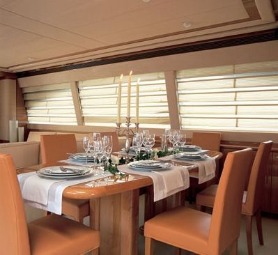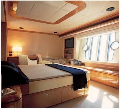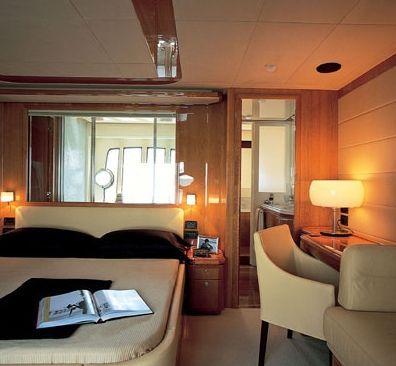 Notas internasPuente de cubierta:-salón con sofá en forma de l y mesa, mesa de comedor contrasta de contenedor móvil y ocho sillas, escalera interna para llegar a volar en sala-cocina independiente con vitrocerámica, nevera/congelador, horno, columna lavavajillas, puerto en el pasillo lateral sn-pasillo con escaleras descendente a las cabinas de salida y salida de puerto en el lado derecho pasillo-baño-caseta con comedor. PISO inferior:-armador recámaras cabina con cama matrimonial, baño con ducha separada, cabina sin cita doble armario-vip en proa con cama matrimonial, baño con ducha separada y dos cabinas dobles con camas, cada uno con su propio baño y ducha separada. -Tripulación: cabina simple y doble cabina con literas con baño compartido. -Cereza Interior, sofás de cuero.