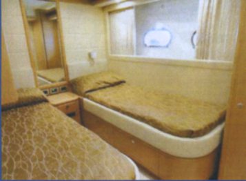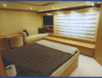 Notas internasNotas de la instrumentaciónInstrumentación de Raymarine: eco, registro, GPS / plotter, radar Furuno, Simrad VHF (con dificultad), Naviop control, cámaras (Stern, sala técnica, sala de máquinas 2), MTU Blueline en el salpicadero, se sentó sistema Navisystem en todas las cabinasNotas de armamentoDolby Surround, teléfono GSM, potabilizador de agua 120 l / h, estabilizadores, lavadora, secadora, aspiradora central, TV 42 'retráctil. |