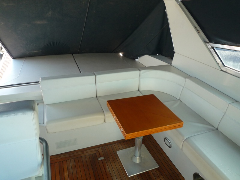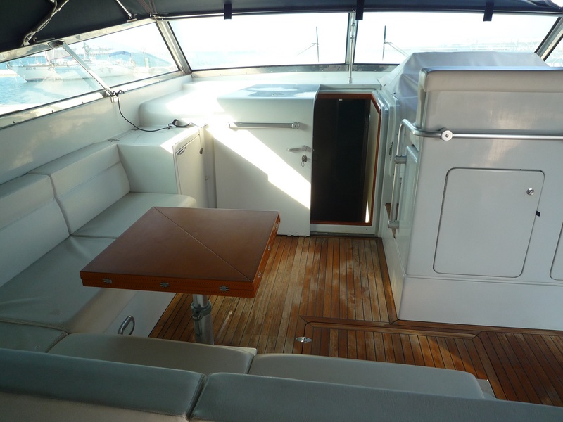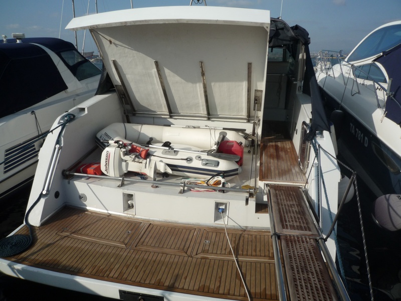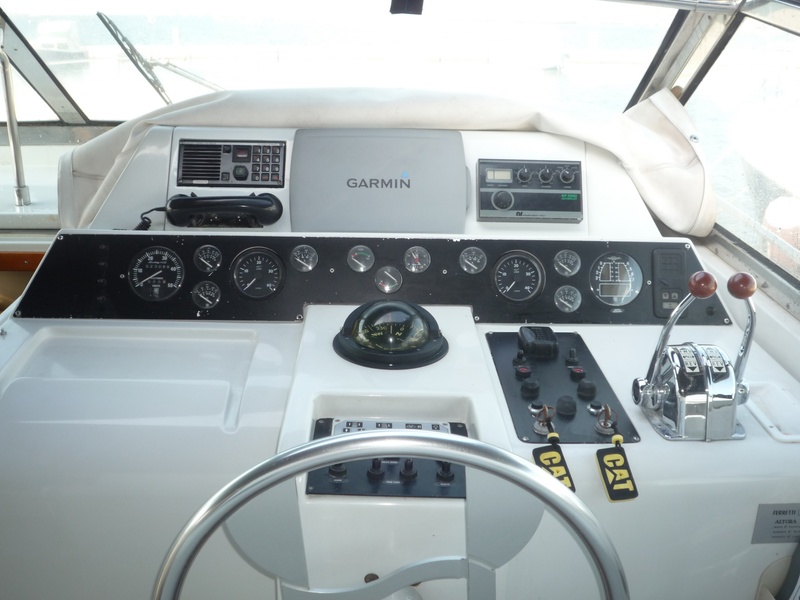 FERRETTI HILL 47 abierto, el año de 1990, dos CATERPILLAR motores MOD. 3208 Dedos 380 HP, completo reacondicionamiento en 2009, cereza interior piel beige y pisos de parquet brillante suelo.. Reenviar camarote con baño y ducha, una doble cabina con baño y ducha, con servicios de cabina de marinero. Gran comedor con dos sofás de cuero. Gran solarium en proa y popa. nuevos cojines al aire libre. Teca, teca con mesa exterior, garaje con apertura automática para licitación de Monte 2.50, con sistema hidráulico para el lanzamiento. Toldo completo. |