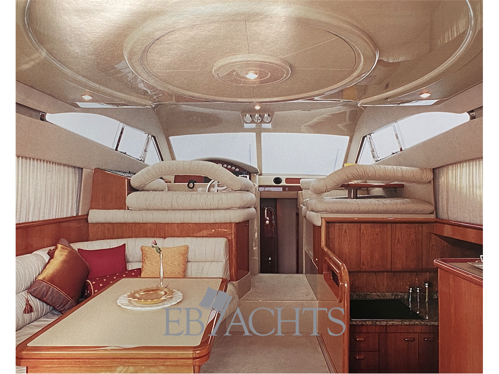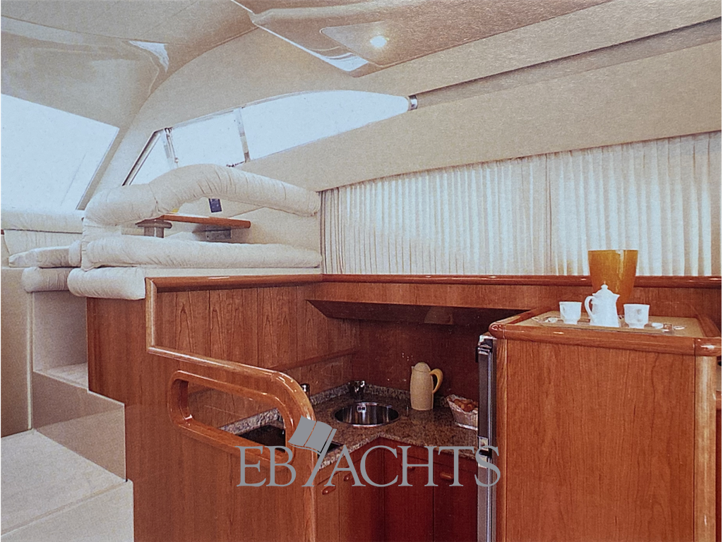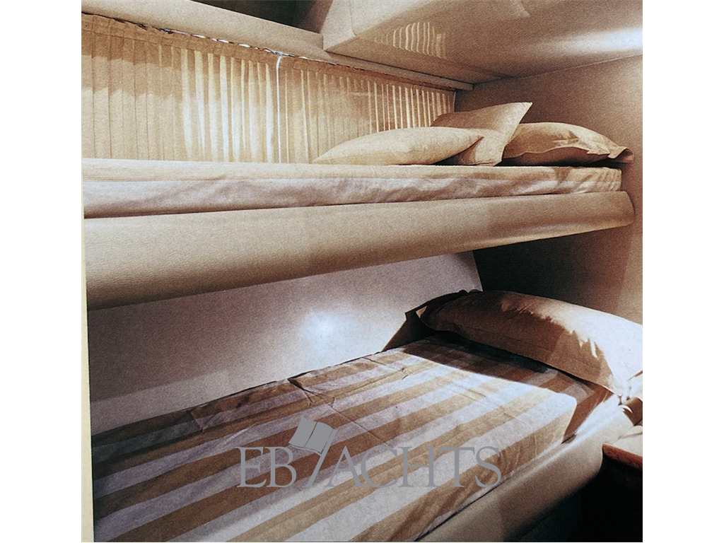 Notas internasCabina armatoriale matrimoniale prodiera con bagno privato e box doccia Due cabine ospiti doppie di cui quella a sx con letti in piano e quella a dritta con letti sovrapposti ed un bagno in comune con box doccia separabile in plexiglass Cabina marinaio a poppa con ingresso e servizi indipendenti. Notas de la instrumentaciónN.2 VHF Shipmate RS8300Bussola elettronica Raytheon ST60 N. 2 Tridata (Ecoscandaglio - Log contamiglia e temp. Acqua) Chartplotter Navionics Lcd 11’’ Flash + Lcd 6’’ Elite Pilota automatico Raytheon ST6000+ Navigator LCD 7” con GPS incorporato Angolo di barra Autohelm ST60 TVCC con telecamera pozzetto e sala macchine Elica di prua Max Power Notas de armamentoAria condizionata doppio ciclo Condaria con regolazione indipendenteDissalatore Idromar 100 lt/h Chiusura posteriore con porta scorrevole e finestra basculante in acciaio inox N. 2 Winch tonneggio Quick (prua/poppa) Ancora Bruce 15 kg in acciaio con catena 75 mt Cassaforte Lavatrice Mobile fly con lavello, frigo e barbecue Bimini top Cappe oscuranti Impianto stereo Sony Antenna TV N. 3 Tv Moquette in salone, cucina e cabine con kit ricambio completo nuovo originale Ferretti Divani in pelle salone Piano cottura a gas a 4 fuochi Frigorifero/freezer a colonna Forno microonde Lavastoviglie Passerella idraulica Besenzoni telescopica Doccia acqua calda/fredda in pozzetto Pedana di poppa allungata di 40 cm con rivestimento in TEAK nuovo |