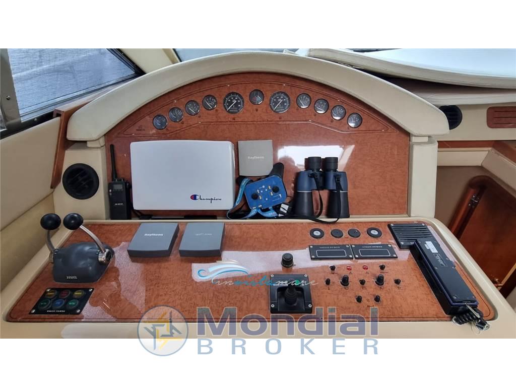 Notas de armamentoAltoparlanti, Aria condizionata, Bimini, Boiler, Cassaforte, Clima reversibile, Copripozzetto, Cucina, Cuscineria di prua, Cuscineria fly, Cuscineria Pozzetto, Dotazioni di sicurezza entro 12 miglia, Frigorifero esterno (sul fly), Frigorifero interno (190 litri), Ghiacciaia, Impianto TV, Inverter, Microonde, Oscuranti, Piastra in vetroceramica (4 fuochi), Prese interne 12v, Prese interne 220v, Radio AM/FM, Stereo, Teli copri finestra, Telo copriconsolle (sul fly), Telo coprisedile (sul fly), TV (Salone), 2 WC marino elettrico, Zattera di salvataggio (Nuova)