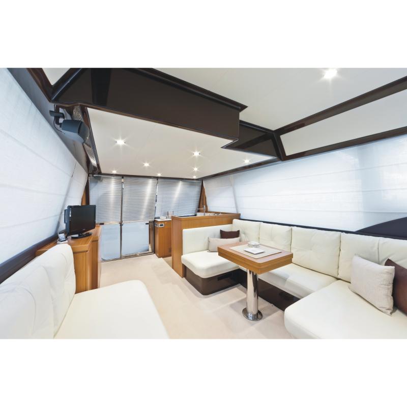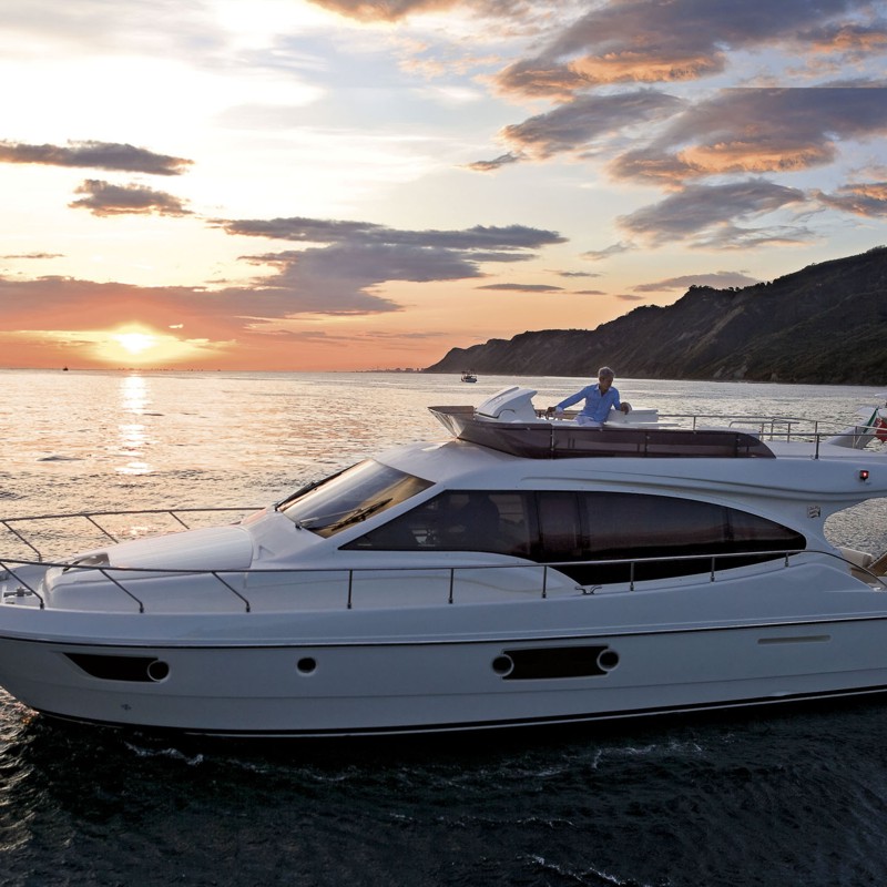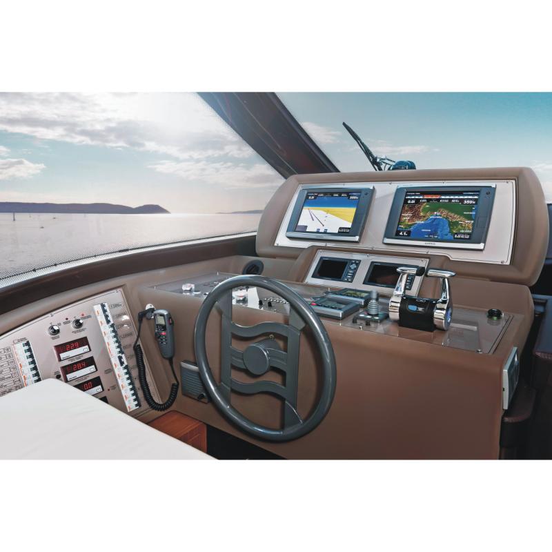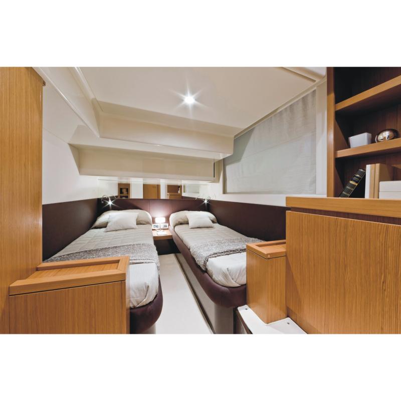 Notas internasEl barco tiene, de hecho, un desarrollo del equilibrio entre los espacios internos y externos, que toma la forma de la expansión de la superficie del pozo para aumentar la calidad de vida del medio ambiente y en un discurso en la decoración interior para dar un sentido renovado de clasicismo contemporáneo, en consonancia con la gama completa.Externamente mantiene girando y sporting perfil del modelo anterior, a la que se añadieron cuatro grandes ventanales en las salas de invitados en el piso inferior.En el arco, también hay dos grandes ventanas con apertura Portilla, que da luz natural a la cabina, y dos ventanas oval con doble puerta iluminar los camarotes de invitados.En el dormitorio hay también tres confortables Cabañas, dos para huéspedes y una para el propietario del buque, en el arco, con gran baño, y viven al aire libre el flybridge ofrece un amplio espacio para disfrutar del sol. Sofás en cuero o tela escalera para volar desde el habitáculo Dinette en las cabinas de equipo uno 3 cabañas seguras puente con cuarto de baño o armario ubicación armador adelante 2 º paralelo camas cabina 3a paralelo camas de posición cabina de tripulación cabinas de popa 2 baños adicionales de accesorios instalados: compacto lavavajillas 4 CP. 3 estufas de cerámica estufa nevera y fregadero en mosca móvil