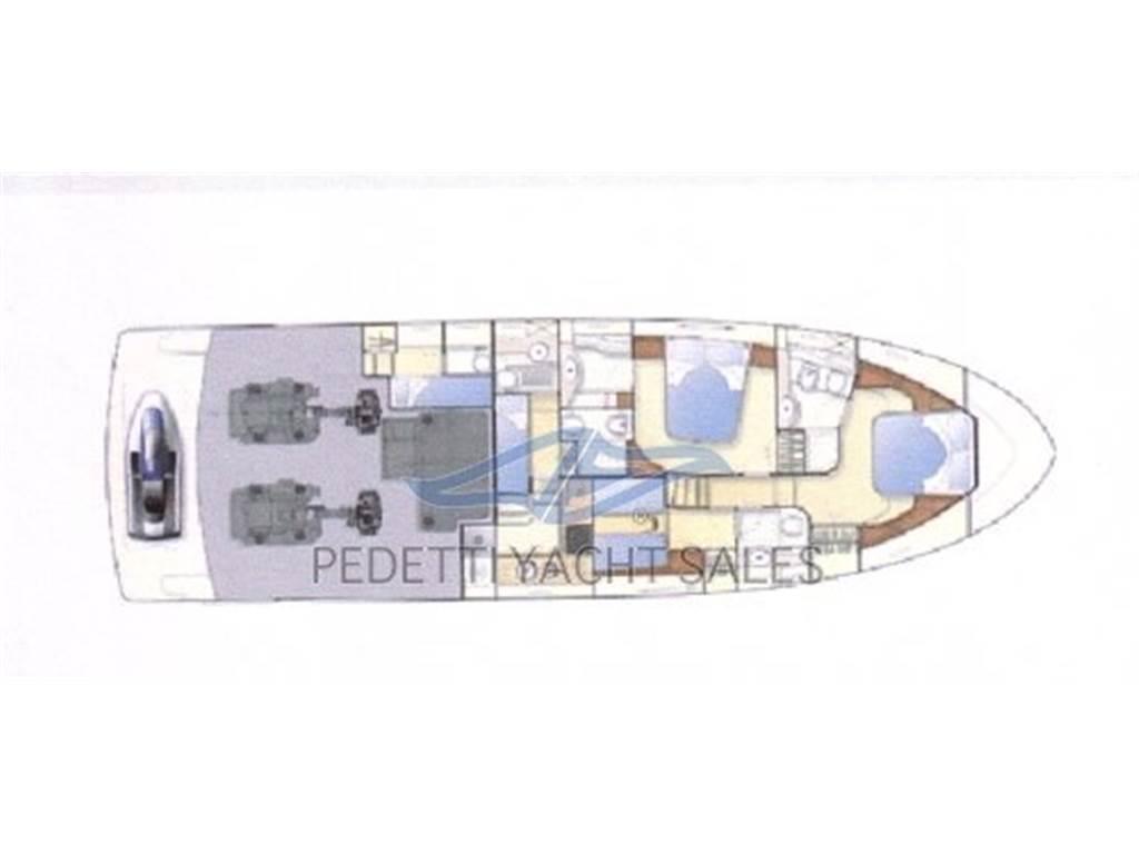 Notas de armamentoAltoparlanti, Antenna Satellitare TV, Barometro, Binocolo, Boetta fumogena, Boiler, Carte nautiche, Cassaforte, Cassetta di pronto soccorso, Cinture di salvataggio, Clima reversibile, Cuscineria completa, Cuscineria di poppa, Cuscineria di prua, Cuscineria fly, Dissalatore, Dotazioni di sicurezza entro 50 miglia, Fuochi a mano a luce rossa, Giubbetti di salvataggio, Impianto TV, Inverter, Lavastoviglie, Lavatrice, Microonde, Prese interne 12v, Prese interne 220v, Radio AM/FM, Razzi a paracadute a luce rossa, Riflettore Radar, Salvagente anulare con cima munita di boetta luminosa, Strumenti da carteggio, TV, 3 WC marino elettrico, Zattera di salvataggio