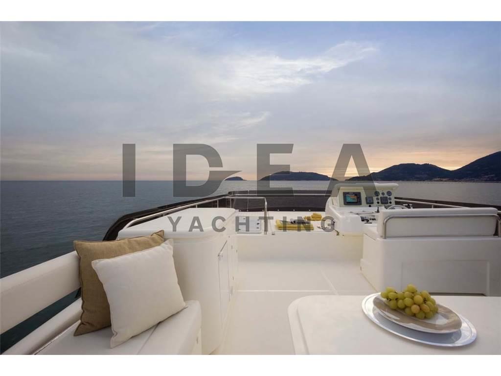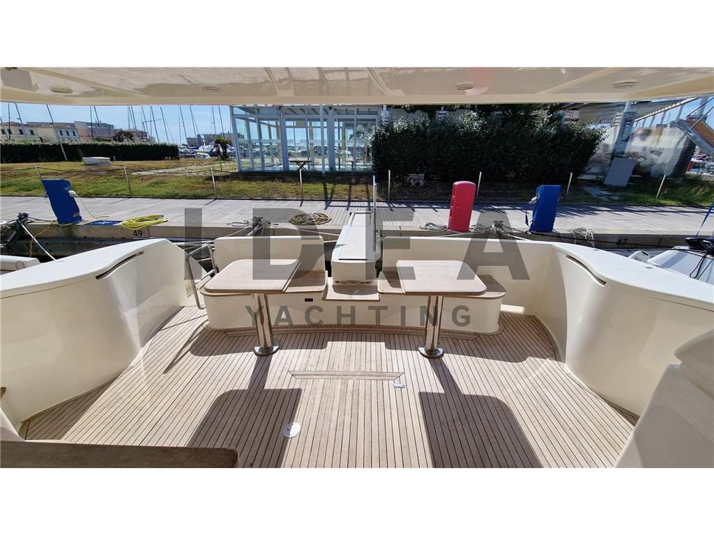 Notas internasCabina armatoriale a centro barca a tutto baglio Cabina VIP a prua con letto matrimoniale Cabina ospiti con due letti in piano Notas de la instrumentaciónAngolo barra, Antenna radar, Bussola, Comando motori elettronico, Contametri catena, Contamiglia, DSC vhf, Ecoscandaglio (Raymarine), GPS, Log (Raymarine), Pilota automatico (Raymarine), 3 Plotter (Raymarine 12" E120 Wide new 2021), Radar (Raymarine), Radio VHF (Simrad).Notas de armamentoAllestimento tecnico e di coperta:Allarme fumo/gas, Allarme motore, Allarme sentina, Ancora, Doccia esterna, Doppia timoneria, Elica di prua - bow thruster (Side Power), Faro orientabile, Flap idraulici, Impianto antincendio, Lavandino nel Pozzetto, Luci di cortesia, Passerella (Besenzoni Hydraulic), Piattaforma, Pompa di sentina automatica, Pompa di sentina elettrica, Pompa di sentina manuale, Porta ingresso, Pozzetto Teak, Presa 220V banchina, Ripetitore strumentazione, Salpa Ancore Elettrico (Lofrans), Scaletta da bagno (Electric), Tavolo pozzetto, Tromba, Winch Elettrico, Winch tonneggio di poppa, Winch tonneggio di prua. Dotazioni domestiche di bordo: Aria condizionata, Clima reversibile, Dissalatore (Idromar 130 l/h), Impianto acque nere, Pavimento interno in legno, Prese interne 220v, Riscaldamento, Serbatoio Acque Nere, 4 WC marino elettrico. Intrattenimento: Altoparlanti, Antenna Satellitare TV, Decoder satellite, Digitale Terrestre, Impianto TV, Meccanismo saliscendi per TV, Radio AM/FM, TV. Cucina ed elettrodomestici: Congelatore, Cucina, Frigorifero esterno, Frigorifero interno, Lavasciuga, Microonde, Piastra in vetroceramica. Tappezzerie: Bimini, Cuscineria completa, Cuscineria di poppa, Cuscineria di prua, Cuscineria fly, Cuscineria Pozzetto, Oscuranti, Teli copri finestra, Telo copriconsolle, Telo coprisedile. |