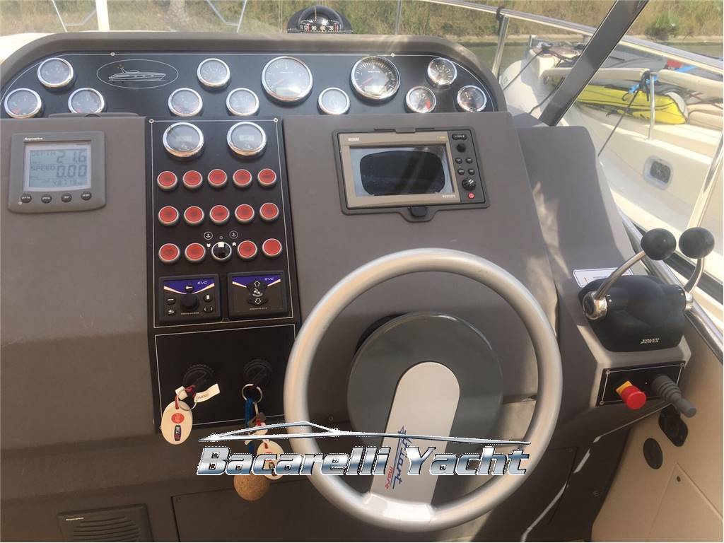 Notas internasposti letto 4+2 1 cabina armatoriale di pura con letto matrimoniale 1 cabina ospiti di poppa con letto matrimoniale 1 bagno completo di doccia 1 bagno armatoriale 1 dinette trasformabile Notas de la instrumentaciónGpspilota automatico radio vhf conta catena flap elettronici ecoscnadaglio NOTE AGGIUNTIVE Notas de armamentoGeneratorepasserella idraulica elica di pura Tendalino tavolo elettrico nel pozzetto plancietta di poppa in teak |