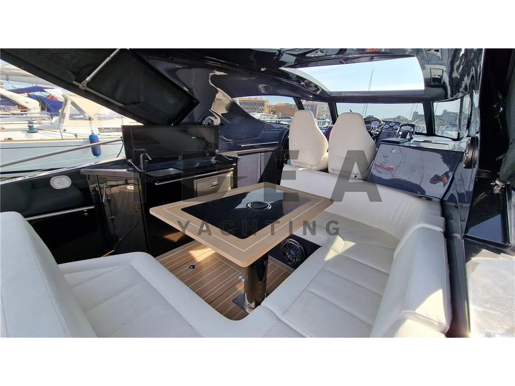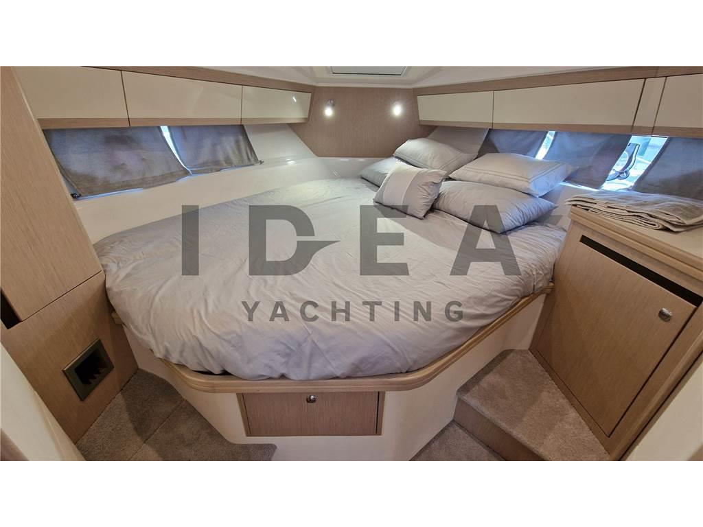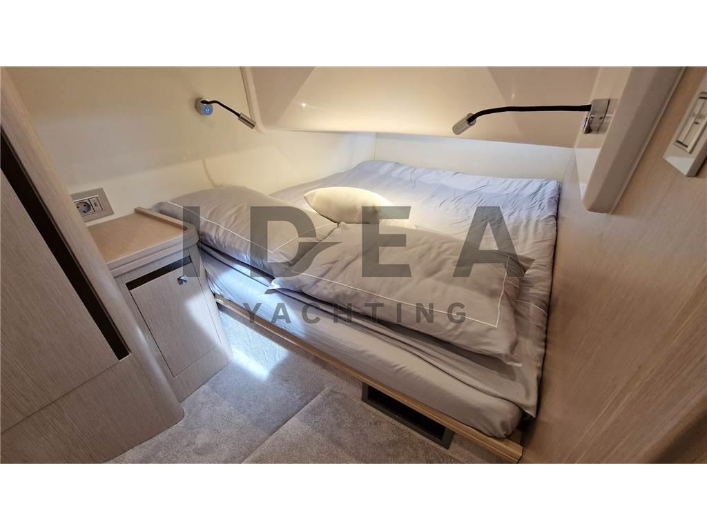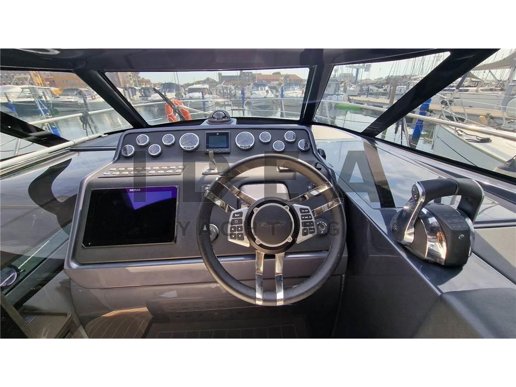 Notas internasCabina armatoriale a prua con acceso diretto al bagno Cabina ospiti a poppa con letto matrimoniale Notas de la instrumentaciónBussola, Comando motori elettronico, Contamiglia, DSC vhf, Ecoscandaglio, GPS, Log, Plotter (Simrad 12"), Radio VHF (Simard RS20S), Sedile Copilota.Notas de armamentoAllestimento tecnico e di coperta:Allarme motore, Allarme sentina, Ancora, Camminamenti laterali in teak (synthetic), Doccia esterna, Elica di prua - bow thruster (Side Power), Flap elettrici (Bennett), Impianto antincendio, Indicatori Flaps, Lavandino nel Pozzetto, Luci di cortesia, Luci subacquee, Pannelli Solari, Passerella (Manual in carbon), Piattaforma (Hydraulic), Pompa di sentina automatica, Pompa di sentina elettrica, Pompa di sentina manuale, Pozzetto Teak (synthetic), Presa 220V banchina, Raddrizzatore, Salpa Ancore Elettrico, Scaletta da bagno, Tavolo pozzetto, Tromba, Winch Elettrico. Dotazioni domestiche di bordo: Aria condizionata, Clima reversibile, Impianto acque nere, Pavimento interno in legno, Prese interne 220v, Riscaldamento, Serbatoio Acque Nere, WC marino elettrico. Intrattenimento: Altoparlanti, Impianto TV, Stereo (JL Audio), TV. Cucina ed elettrodomestici: Cucina, Frigorifero esterno (Vitrifrigo), Frigorifero interno (Vitrifrigo), Piastra in vetroceramica. Tappezzerie: Cuscineria completa, Cuscineria di poppa, Cuscineria di prua, Cuscineria Pozzetto, Oscuranti. |