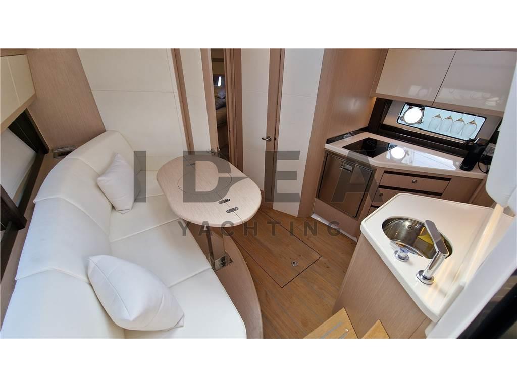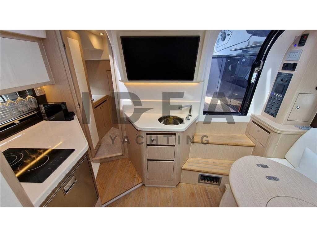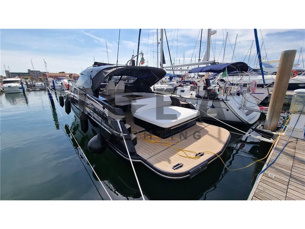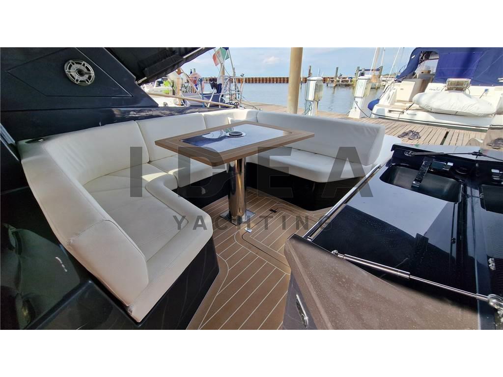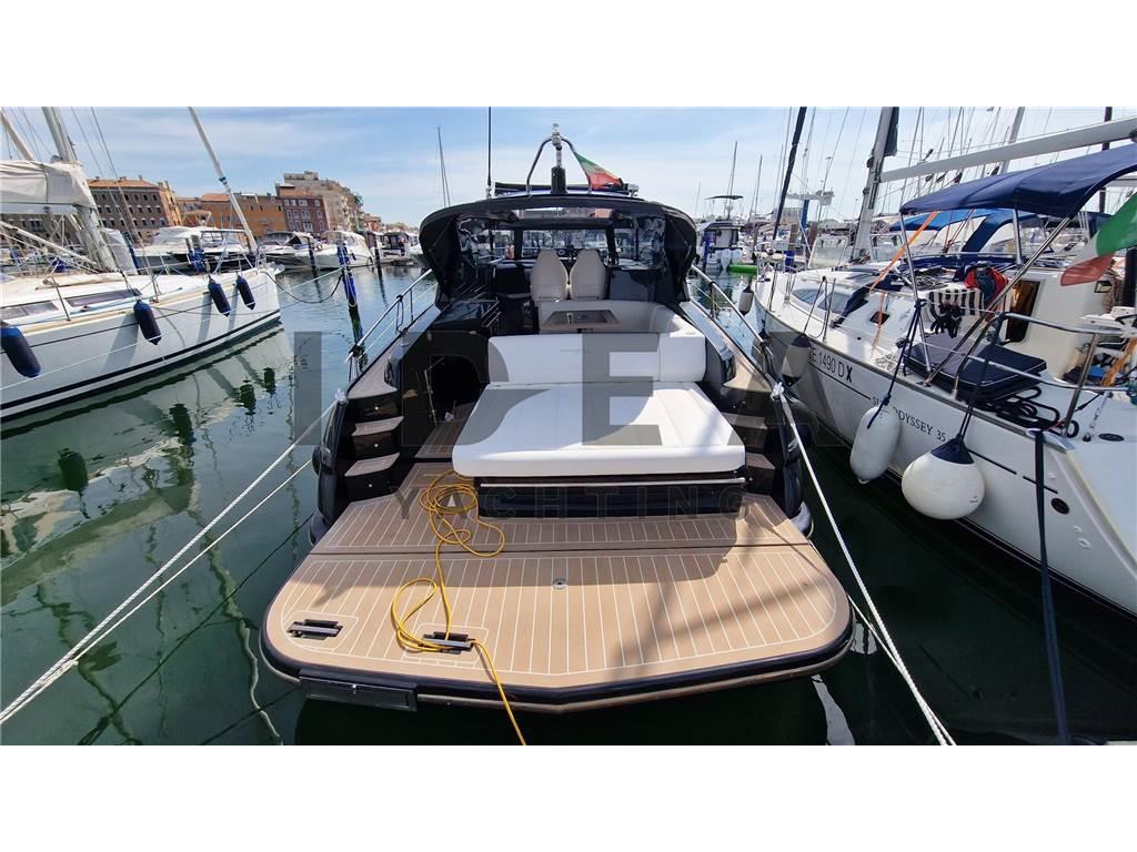 Notas internasCabina armatoriale a prua con acceso diretto al bagno Cabina ospiti a poppa con letto matrimoniale Notas de la instrumentaciónBussola, Comando motori elettronico, Contamiglia, DSC vhf, Ecoscandaglio, GPS, Log, Plotter (Simrad 12"), Radio VHF (Simard RS20S), Sedile Copilota.Notas de armamentoAllestimento tecnico e di coperta:Allarme motore, Allarme sentina, Ancora, Camminamenti laterali in teak (synthetic), Doccia esterna, Elica di prua - bow thruster (Side Power), Flap elettrici (Bennett), Impianto antincendio, Indicatori Flaps, Lavandino nel Pozzetto, Luci di cortesia, Luci subacquee, Pannelli Solari, Passerella (Manual in carbon), Piattaforma (Hydraulic), Pompa di sentina automatica, Pompa di sentina elettrica, Pompa di sentina manuale, Pozzetto Teak (synthetic), Presa 220V banchina, Raddrizzatore, Salpa Ancore Elettrico, Scaletta da bagno, Tavolo pozzetto, Tromba, Winch Elettrico. Dotazioni domestiche di bordo: Aria condizionata, Clima reversibile, Impianto acque nere, Pavimento interno in legno, Prese interne 220v, Riscaldamento, Serbatoio Acque Nere, WC marino elettrico. Intrattenimento: Altoparlanti, Impianto TV, Stereo (JL Audio), TV. Cucina ed elettrodomestici: Cucina, Frigorifero esterno (Vitrifrigo), Frigorifero interno (Vitrifrigo), Piastra in vetroceramica. Tappezzerie: Cuscineria completa, Cuscineria di poppa, Cuscineria di prua, Cuscineria Pozzetto, Oscuranti. |