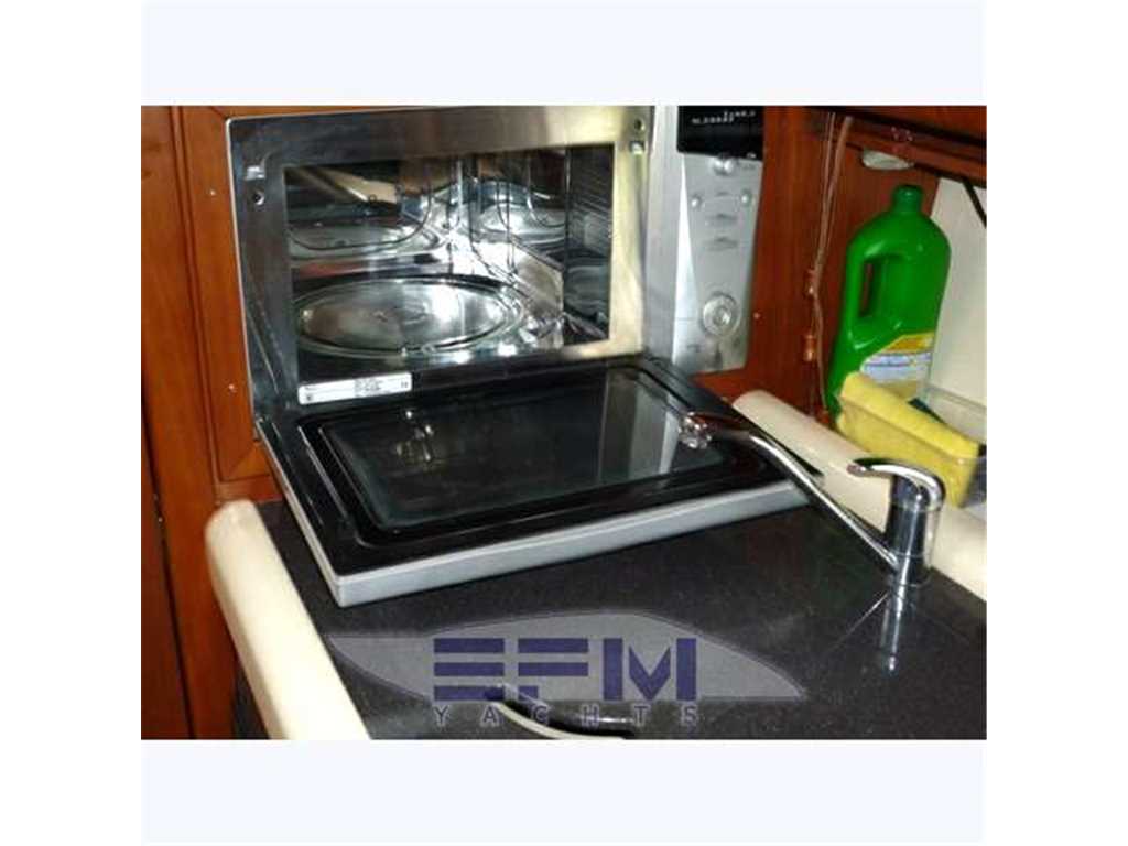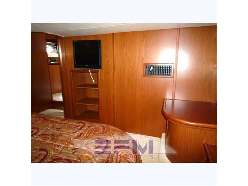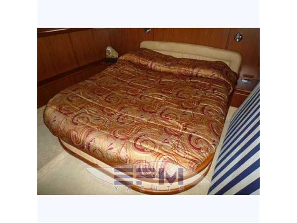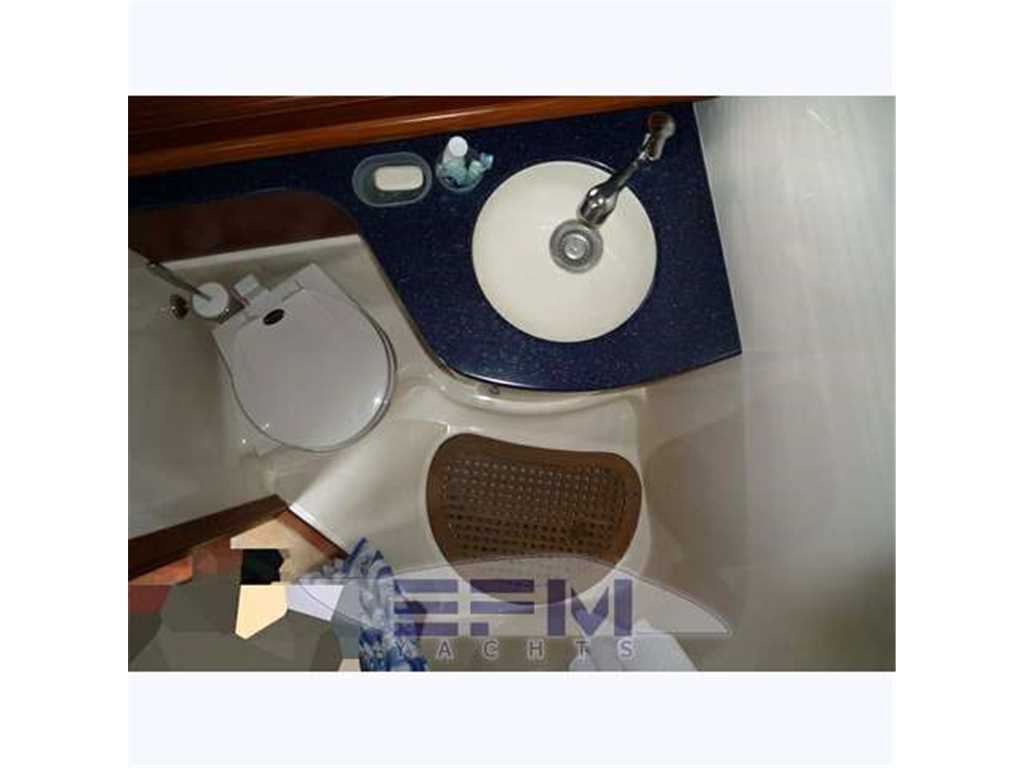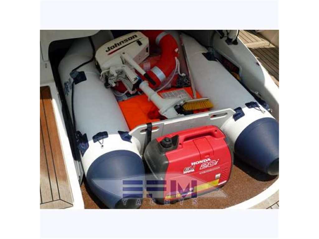 Classic interiors cherry satin and suede ivory, beige carpet and ivory leather settee - Bright and spacious master cabin amidships with island double bed wardrobe and bedside cabinet detached with another mobile + 2 seater sofa in ivory suede - Second large VIP cabin forward with island double bed with drawers,Tv lcd 20' Sharp, cupboard units and wall cabinets in cherry finish and a private bathroom with vacuum toilet, sink and shower - with access from the saloon to the left after the kitchen, there is a second bathroom with toilet vacuum, sink and shower - Spacious and bright living room with leather sofa Ivoire to "C" and sdoppioabile satin wood table that swivels, and folding into a double bed - kitchen cabinet at side sx complete with cabinets, pantry, sink with double bowl, corian countertop in black, 2-burner electric stove, refrigerator and microwave oven - ivory alcantara interior - solid cherry wood dinette - livable cockpit table with sofa ace + mobile outdoor kitchen with BBQ fridge and sink - garnde aft deck above the garage for the tender -