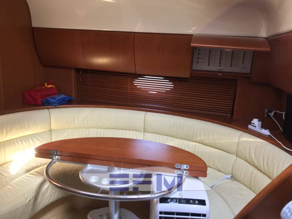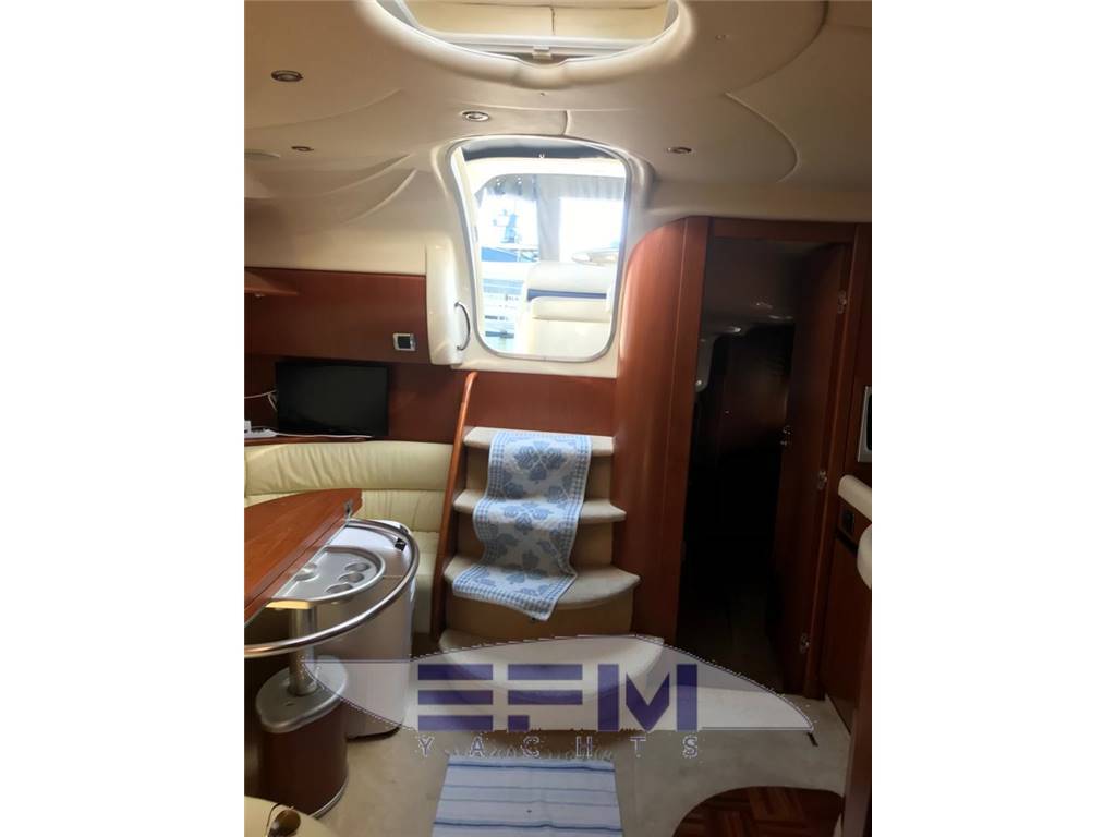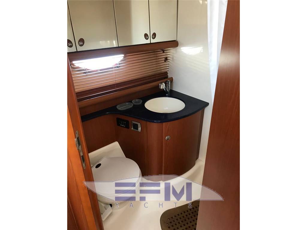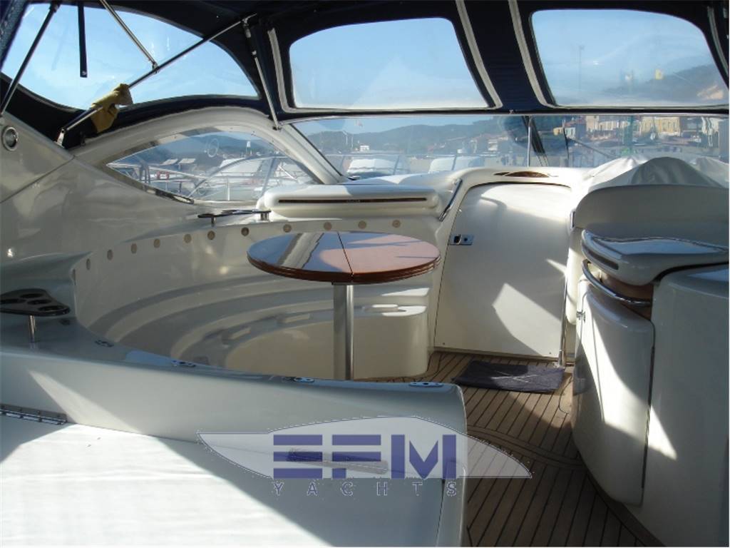 Notas internasNotas de la instrumentaciónFull VDO analogic instruments for monitoring engine parameters, oil temperature water tachometer and speedometer -Instrumentation full Raymarine electronics integrated in the dashboard: GPS chart plotter Raymarine Raytheon Lcd - Autopilot st 65, Tridata st 600 Raymarine - Raymarine GPS antenna - TV Antenna - Antenna VHF - clarion stereo with cockpit speakers and remote control - electronic throttles Volvo Penta - 3 LCD TV 20 'SONY - hydraulic flaps control - Bow thruster - digital chain counter - WHF shipmate - TV system with antenna amplified glomex - Faro electric adjustable - command gangway - Hangar aft hydraulic opening - electric windlass with remote control at the bowNotas de armamentoBow thruster - Opecmare hydraulic gangway in stainless steel and teak - cockpit and aft platform in teak - interior in satin cherry wood - outdoor galley cabinet with barbecue, fridge and sink - WC with vacum flush and black and gray water tank - hydraulic trim tabs - cockpit awning - electric windlass - external shower - swimming ladder - garage with electro-hydraulic opening - complete safety equipment - |
