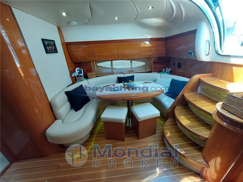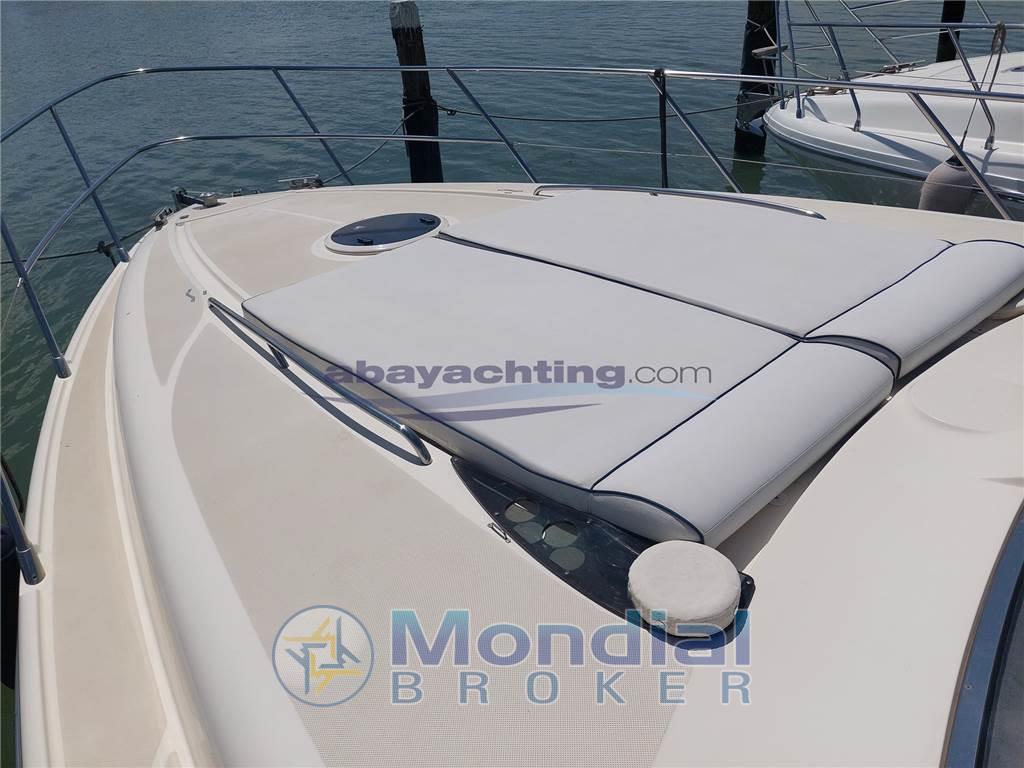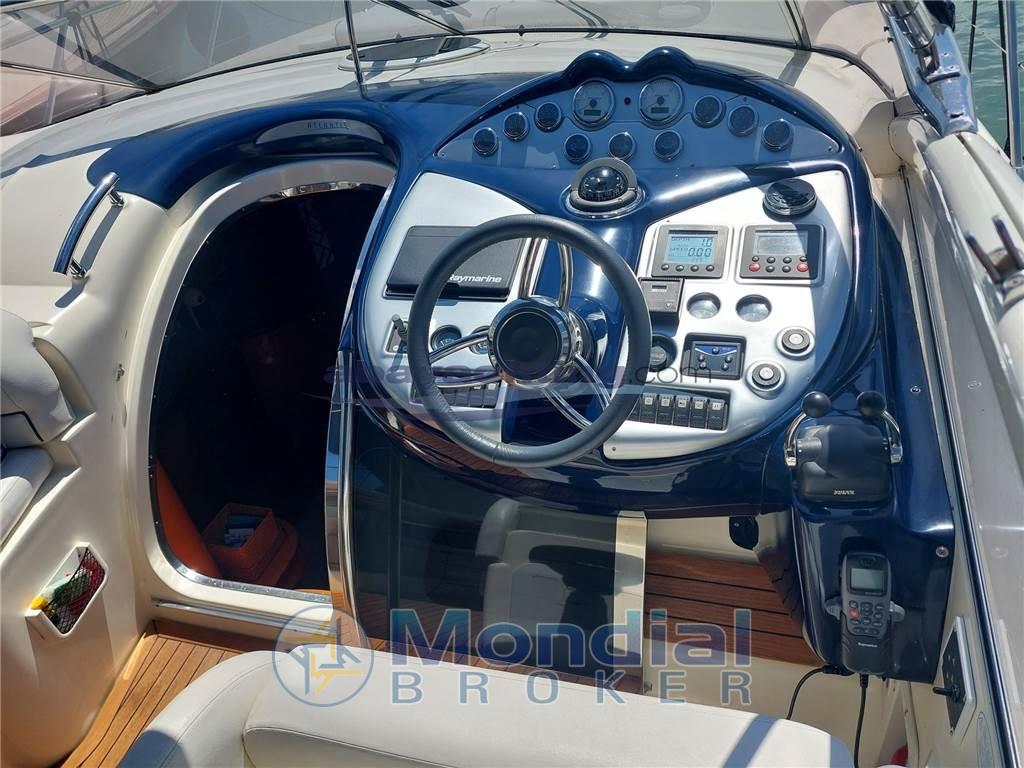 Notas internasNotas de la instrumentaciónAngolo barra (Volvo penta analogico + Raymarine Smart pilot), Antenna radar (Raymarine), Bussola, Comando motori elettronico, Contametri catena (Quick), Display (Raymarine - Tridata), Luci di navigazione, Pilota automatico (Raymarine - Autopilot), Plotter con antenna GPS (Raymarine - Axiom 11), Radar (Raymarine - Interfacciato su Axiom 11), Radio VHF (Raymarine - Ray240E), Sedile Copilota (Divanetto).Notas de armamentoAllestimento tecnico e di coperta:Allarme motore (Volvo Penta - Elettronica EVC), Allarme sentina, Alternatore (12V 115A), Ancora, Apertura Vano Motore Elettrica, Autogonfiabile, Colorazione speciale (Bianca con fascia blu - Trattamento di vetrificazione con pellicola), Doccia esterna (Caldo/freddo), Elica di prua - bow thruster (Side Power), Flap elettrici, Garage per tender, Impianto antincendio (Estintori + Taglio gasolio), Indicatori Flaps (Bennett - Analogici), Lavandino nel Pozzetto, Luci di cortesia, Luci subacquee (3 led su specchio di poppa), Passerella (Opacmare - Elettroidraulica inox ecarabottino teak estensibile e regolabile in altezza), Piattaforma (Fissa a poppa), Pompa di sentina automatica, Pompa di sentina elettrica, Pompa di sentina manuale, Porta ingresso (Scorrevole lateralmente), Pozzetto Teak, Presa 220V banchina (Marinco - 32A), Presa acqua banchina, Rollbar, Salpa Ancore Elettrico (Quick - Con campana tonneggio), Scaletta da bagno (Pieghevole a scomparsa sulla plancetta poppa), Tavolo pozzetto, Tavolo Salone Abbattibile, Tromba, Winch tonneggio di prua (Quick - Campana su salpa ancora). Dotazioni domestiche di bordo: Aria condizionata (Hot/Cold), Clima reversibile, Impianto acque nere (Tank da 150lt), Pavimento interno in legno, Prese interne 12v, Prese interne 220v, Serbatoio Acque Nere (Tank da 150lt), 2 WC marino elettrico (Sistema vacuum). Dotazioni di sicurezza: Barometro. Intrattenimento: Altoparlanti, Antenna Satellitare TV, Digitale Terrestre, Impianto TV, Radio AM/FM, Stereo, TV. Cucina ed elettrodomestici: Cucina, Fornello, Forno (Microonde e forno integrati), Frigorifero esterno (Isotherm), Frigorifero interno (Isotherm), Microonde (Microonde e forno integrati), 2 Piastra elettrica (2 fuochi induzione esterna - … fuochi induzione interna). Tappezzerie: Bimini (Copertura totale pozzetto e chiusure laterali con vetri), Cuscineria completa, Cuscineria di poppa (Prendisole), Cuscineria di prua (Prendisole sulla tuga), Cuscineria Pozzetto (Divano al tavolo e divanetto cookpit), Teli chiusura T-Top (Chiusura posteriore pozzetto con porta). |