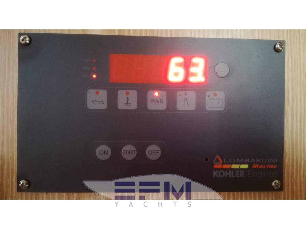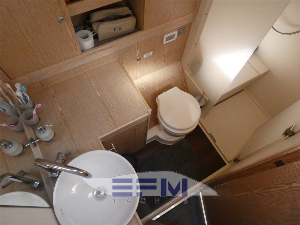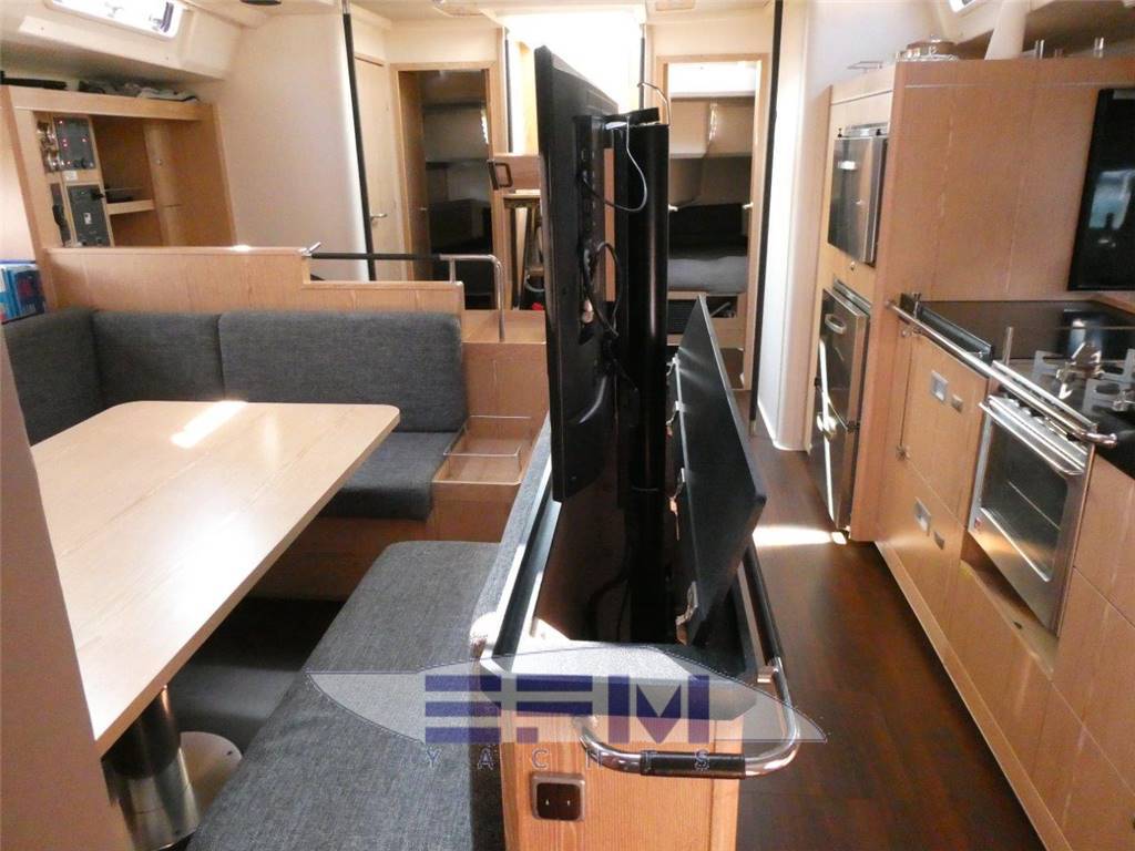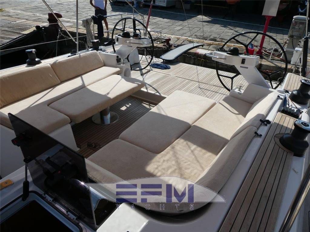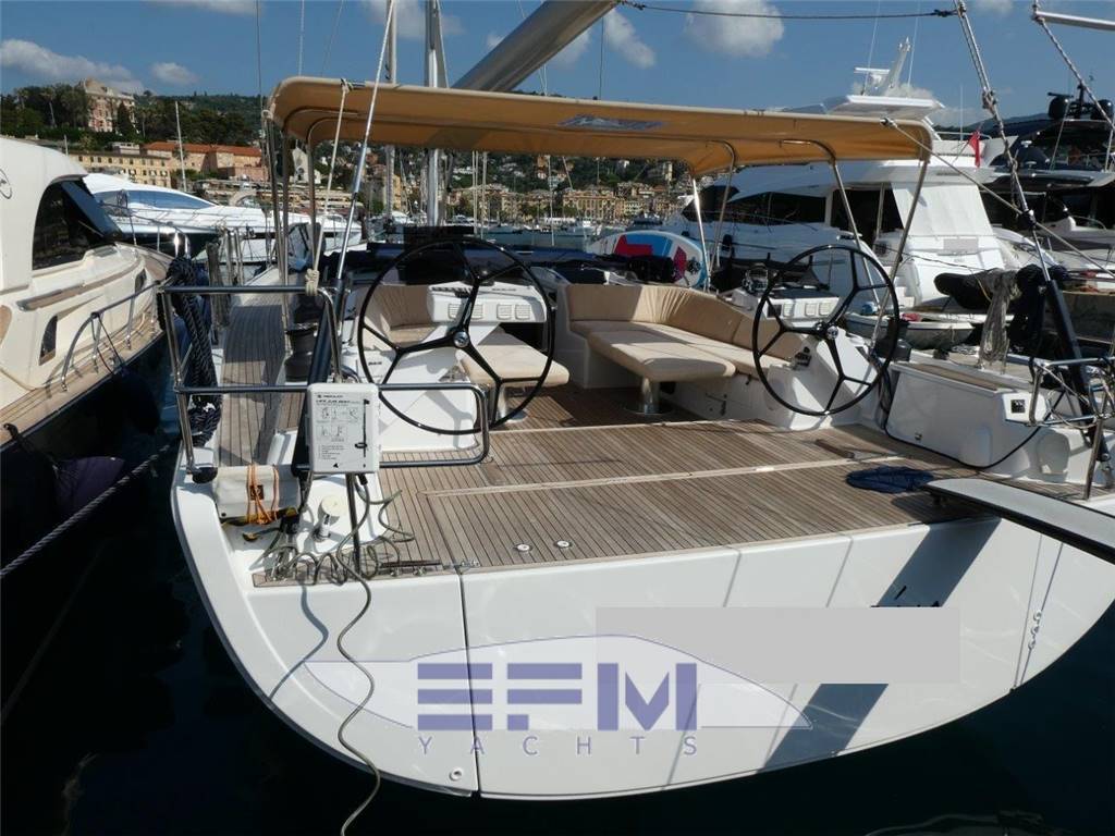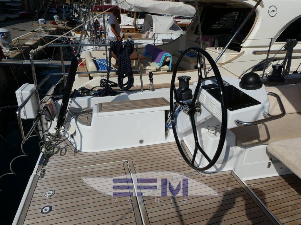 Notas internas• Owner’s version with large owner cabin, two guest cabins and crew cabin • Interior finish in American teak wood with Noce classic striped teak floors • Oceanair blind set with mosquito screens for hatches • Oceanair Venetian blinds for windows • Air conditioning 32.000BTU, 4 units: 2 x saloon, fwd bedroom, aft bedrooms, incl. second shore power. • Indirect lights in saloon and bedrooms • LED overead lights in saloon and bedrooms • SLS – Scenario Light System touch screen controller & dimmer • Miele washer/dryer, front opening (230v) in utility room Saloon • U-shaped sofas and centre seat in Portofino dark brown leather • Saloon table, electrically retractable for kingsize bed • Flatscreen TV on electric lift • Entertainment system • LED ceiling lights • Indirect lights • Blinds and mosquito screens • SLS-Scenario light system touch screen controller & dimmer Galley • The large straight galley is located at port side • Solid Coriean surface, black quartz • 3-burner LPG stove with oven, gimbled • Ventilation hood • LPG Gas system • Double stainless steel sinks with hot & cold pressurized water supply • ENO stainless steel gimballed 3-burner propane gas stove with oven • 3 x Refrigerator, front door opening • 1 x Freezer, front door opening • Extensive storage capacity • dishwasher • washing machine • Water Maker Shanker 180 l/h • 2 x gas bottle storage in garage • Double drawer fridge, totalling 140 l • Lockers and drawers • Waste bin Forward owner’s cabin • Comfortable centreline double bed with Deluxe matrass • Various hanging lockers and clothing lockers • En-suite owner’s bathroom with Jabsco electric flush toilet, shower and washbasin 2 Aft guest cabins • Two comfortable bedrooms each with double bed and Deluxe matrasses • Hanging lockers in both bedrooms • En-suite bathroom at starboard side bedroom with Jabsco electric flush toilet, separate shower cel and washbasin. Crew cabin • Located in the bow • Single bed, marine toilet, sink and dedicated storage space Safety • 2 x Fire extinguishers • Electric bilge pump • Manual bilge pump • Emergency tiller Notas de la instrumentaciónEntertainment system• FUSION MS-AV700i Multimedia radio/CD/DVD-player, incl. colour display • 2 x High end 2-way speakers in saloon and cockpit • FUSION MS-NRX200 remote control in cockpit • FUSION MS-UNIDOCK Docking Station – iPod/iPhone, USB, Android • FUSION MS-BT200 Bluetooth audio/data link • FUSION wireless link • LED TV flat screen in saloon • TV lifting system in saloon • All-in-one antenna in mast top (VHF/FM radio/analog TV/DVBT) ENGINE Volvo Penta D3-150, 110 kW / 150 HP, diesel engine, shaft drive 4 bladed folding propeller Fuel tank, capacity approx. 520 l Fuel infill on deck Fuel filter / Water separator Engine room sound insulated and illuminated with room for (optional) generator above engine ELECTRICAL 12 V and 110 V / 230 V Batteries Main battery switches Engine battery: 12 V / 90 Ah AGM Service battery: 2 x 12 V / 2 x 165 Ah AGM Battery charger / Shore power 230 V shore supply protected with differential breaker and distribution system Battery charge 50 A Electric switch panel 110 V / 230 V Differential breaker Control gauges Voltmeter Electric switch panel 12 V Switches for all onboard electrics Voltmeter Water / fuel gauges / waste water 12 V Electric equipment Electrical anchor windlass Pumps Navigation lights LED Interior lights Refrigerator Outlet 230 V at chart table twin outlet in fwd. cabin one each in aft. cabin one each in galley twin outlet in saloon twin outlet in heads one each Outlets 12 V at chart table at helm station Interior lighting Overhead lighting in cabins, saloon, galley and heads Lighting in engine compartment Reading lights in saloon and cabins Courtesy light on companion way Navigation lights Navigation lights LED on pulpit and pushpit Steaming light LED Anchor light LED Navigation instruments 2 illuminated compasses at each helm Notas de armamentoHULLWhite hull Dark grey double waterlines Options for different hull colour according to Hanse colour selection Isophatalic Gelcoat Vinylester for all outer laminates Polyester inner laminate (Orthophtalic or DCPD) Bulkheads laminated to hull (main bulkhead laminated to hull and deck) GRP strongback Hull Windows DECK White deck with non slip structure Isophtalic Gelcoat Vinylester 1st layer Bulk laminate Polyester (Orthophtalic or DCPD) Balsa sandwich STEERING SYSTEM Redundand twin wheel steering system 2 leather covered steering wheels Steering pedestals with instrument consoles Semi-balanced, profiled rudder with alloy shaft and selfaligning needle bearings KEEL Standard: T shape iron keel draft: 2.85 m Stainless steel keel bolts Teak on cockpit benches Teak on cockpit floor Partial moulded non-skid surface on the coach roof and side decks Lifting entrance door with lock Engine control at helm station stb 6 retractable mooring cleats Self-draining chain locker with electrical windlass on deck Fix anchor arm with anchor roller and integrated teak step with padeye for genakker 2 stainless steel cockpit tables 2 storage lockers in cockpit Foredeck sail storage with ladder and big hatch Hot & cold shower on aft deck Self-draining cockpit Halyard storage boxes in the cockpit Storage for gas bottle, selfdraining in dinghy garage Stainless steel swim ladder Hinged cockpit floor hatch on transom Longitudional dinghy garage Self-tacking jib track, fully integrated in the foredeck Midboom sheeting with 2 stand-up blocks 2 x 5 sheave deck organizers 11 deck jammers 6 padeyes for gennaker, jib 16 Flush hatches 2 portholes for aft cabins 2 opening portholes 4 opening side windows at coach roof Stainless steel pushpit with LED navigation light and ensign shaft socket Stainless steel pulpit with LED navigation lights Stainless steel stanchions tapered Rail gates on both sides 4 winches in cockpit: 2