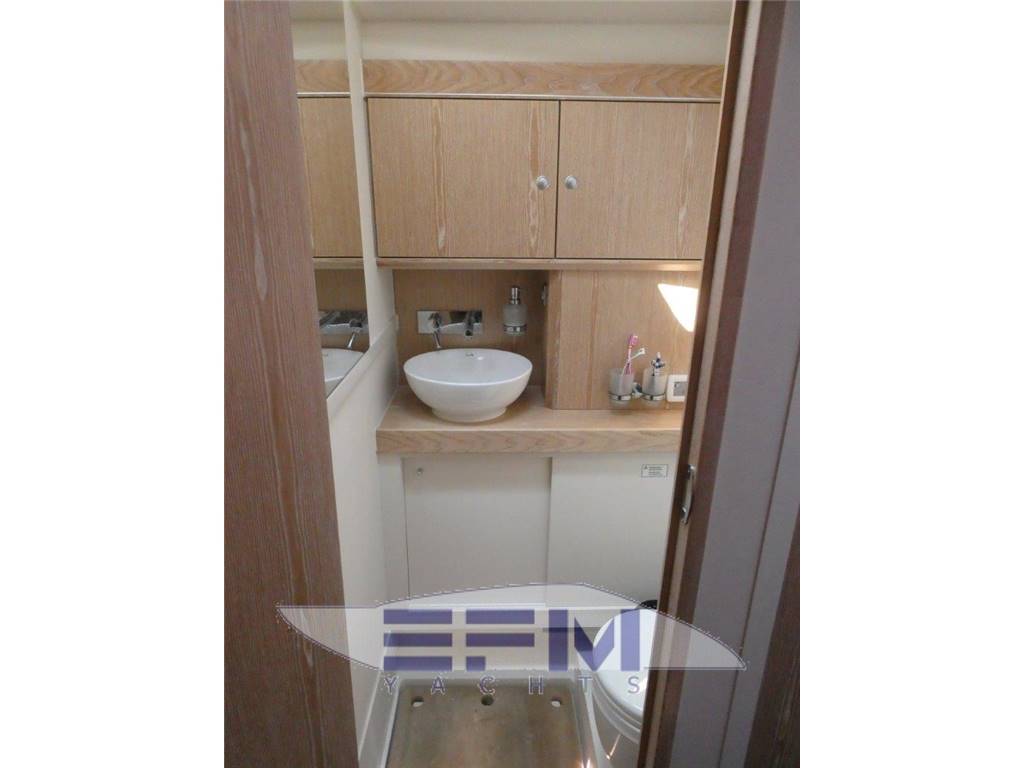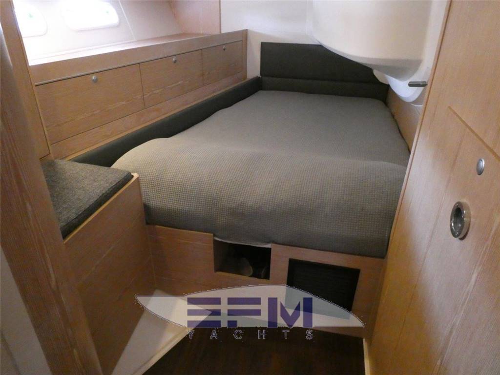 ENGINE Volvo Penta D3-150, 110 kW / 150 HP, diesel engine, shaft drive 4 bladed folding propeller Fuel tank, capacity approx. 520 l Fuel infill on deck Fuel filter / Water separator Engine room sound insulated and illuminated with room for (optional) generator above engine ELECTRICAL 12 V and 110 V / 230 V ELECTRICAL SYSTEM Main battery switches Engine battery: 12 V / 90 Ah AGM Service battery: 2 x 12 V / 2 x 165 Ah AGM Battery charger / Shore power 230 V shore supply protected with differential breaker and distribution system Battery charge 50 A Electric switch panel 110 V / 230 V Differential breaker Control gauges Voltmeter Electric switch panel 12 V Switches for all onboard electrics Voltmeter Water / fuel gauges / waste water 12 V Electric equipment Electrical anchor windlass Pumps Navigation lights LED Interior lights Refrigerator Outlet 230 V at chart table twin outlet in fwd. cabin one each in aft. cabin one each in galley twin outlet in saloon twin outlet in heads one each Outlets 12 V at chart table at helm station Interior lighting Overhead lighting in cabins, saloon, galley and heads Lighting in engine compartment Reading lights in saloon and cabins Courtesy light on companion way Navigation lights Navigation lights LED on pulpit and pushpit Steaming light LED Anchor light LED Navigation instruments 2 illuminated compasses at each helm |