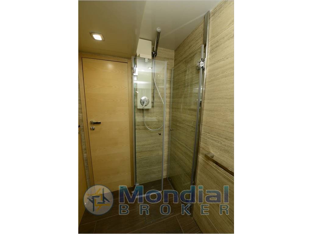 | Cabina marinaio posta a prua e completa di letto, armadio, lavabo e wc; Vano motori con apertura idraulica del portellone e comoda scala di accesso, con serbatoi carburante ed acqua dolce, motori principali e gruppo elettrogeno, pompe oleodinamiche, impianto antincendio, segnalatori d’acqua in sentina e di presenza fumi; IMPIANTI DI SICUREZZA Allarme di bassa pressione olio motori; Allarme di alta temperatura acqua motori; Allarme per presenza acqua in sentina. Allarme per presenza fumi nel vano motori. Impianto automatico di estinzione incendio nel vano motori Annotazioni di sicurezza per navigazione senza limiti. Parabordi e cime di ormeggio Comandi monoleva di inversione ed accelerazione elettronici; Prefiltri carburante supplementari con separatori d’acqua; Imbarcazione verniciata con doppio colore metallizzato Consegnata in acqua pronta alla boa. |