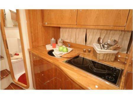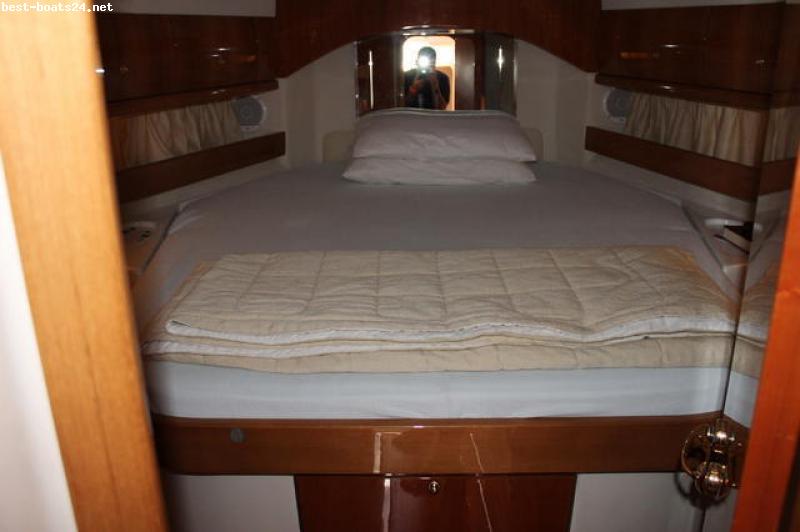 Notas de armamentoComedor cocina eléctrica incorporada de gas cocina al aire libre (2 quemadores) 2 refrigeradores microondas (internos y externos) helice de proa hidráulico pasillo con calor la temperatura ambiental independiente reversible en el remoto aire acondicionado calefacción ducha caliente y frÃos (cabina) caldera energÃa enchufe 220 V conexión a tierra la orilla V con corriente 220 lÃnea Cable Nr. 4 canalizaciones en acero inoxidable con ojo de buey de black-out boca Nº 8 acero inoxidable toma 12 V y luces de techo de 220 V en la centralita cockpit y cabina de navegación luces reglamentarias con estéreo con altavoces interiores y al aire libre-nr de protección. 2 tanques de combustible (550 l cada uno) Filtros de combustible adicional, válvulas de solenoide nr. bomba de achique automática 2 lt 125 min-nr. bomba de 1 achique lt equipo de seguridad de 100/min (a verificar) ancla w. solarium de arco completo de acero inoxidable de cadena plataforma de popa baño escala cojines toldos completo de bimini