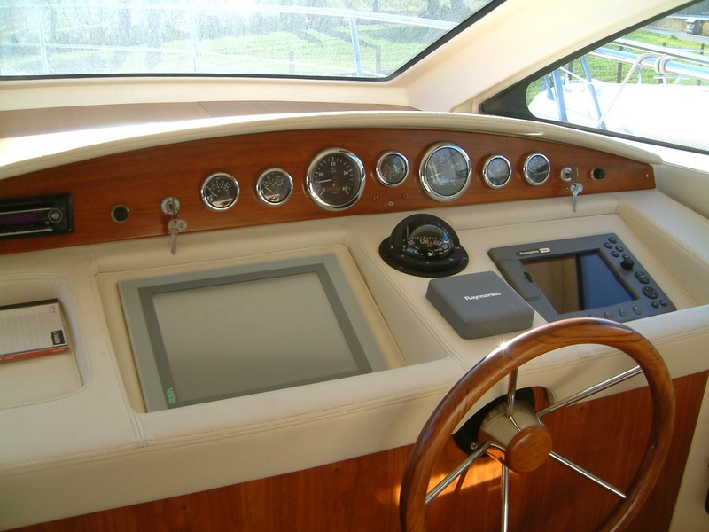 Notas internasNotas de la instrumentaciónCon doble repetida sobre la marcha: 2 brújulas Gps chart plotter con cartografÃa, piloto automático, sonda, Vhf, corredera con antena externa, registro, aletas electro-hidráulicas, viseras flaps, timón, panel de control de pantalla táctil Tv con antena Tv Lcd en salón sistema de radio estéreo con cabrestante hidráulico de altavoces externos electro también con control remotoNotas de armamentoAire acondicionado de kw de Genaratore 6 en cada termostatos de calefacción ambiental pasillo hidráulico reversible con helice de proa remoto alargada plataforma baño escala caliente/frÃa ducha de la teca en sofás de cuero Interior de madera de teca de cabina cabina piso exteriores cojines solarium exteriores toldos completan ancla completa cubierta mosca Bimini w. equipo de seguridad de la cadena (a verificar) prácticamente nuevo barco |