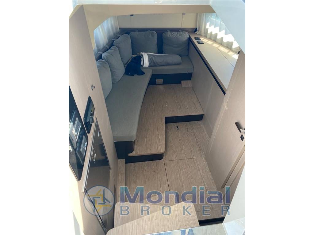 Notas internasCabina di poppa con letto matrimoniale completo di materasso, mobili con interruttori luci lettura e presa 230V, mobili in essenza, oblò apribili e illuminazione led. Bagno con porta e mobili in essenza, wc con lavaggio ad acqua dolce, doccia, lavello con miscelatore, presa 230V con protezione magnetotermica differenziale, carabottino pavimento doccia in essenza, doccino con saliscendi, faretti stagni a led, complementi d'arredo bagno, oblò apribile. Notas de la instrumentaciónCompleta |
