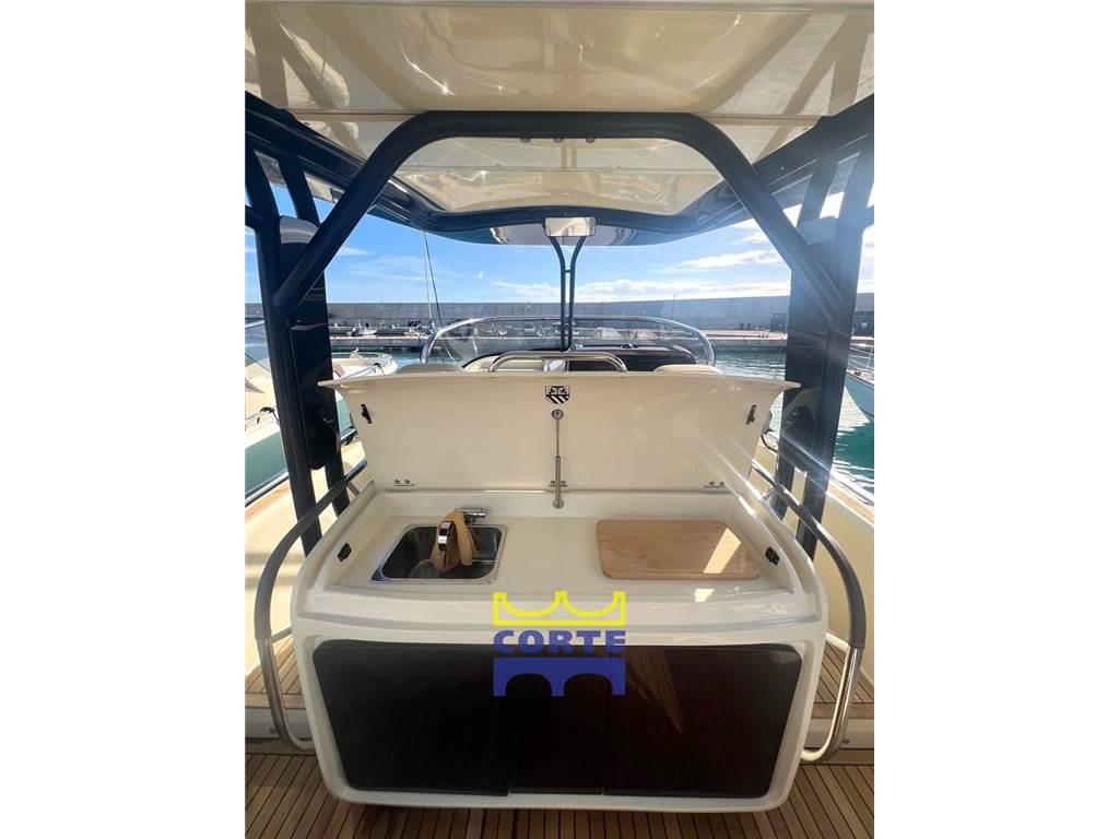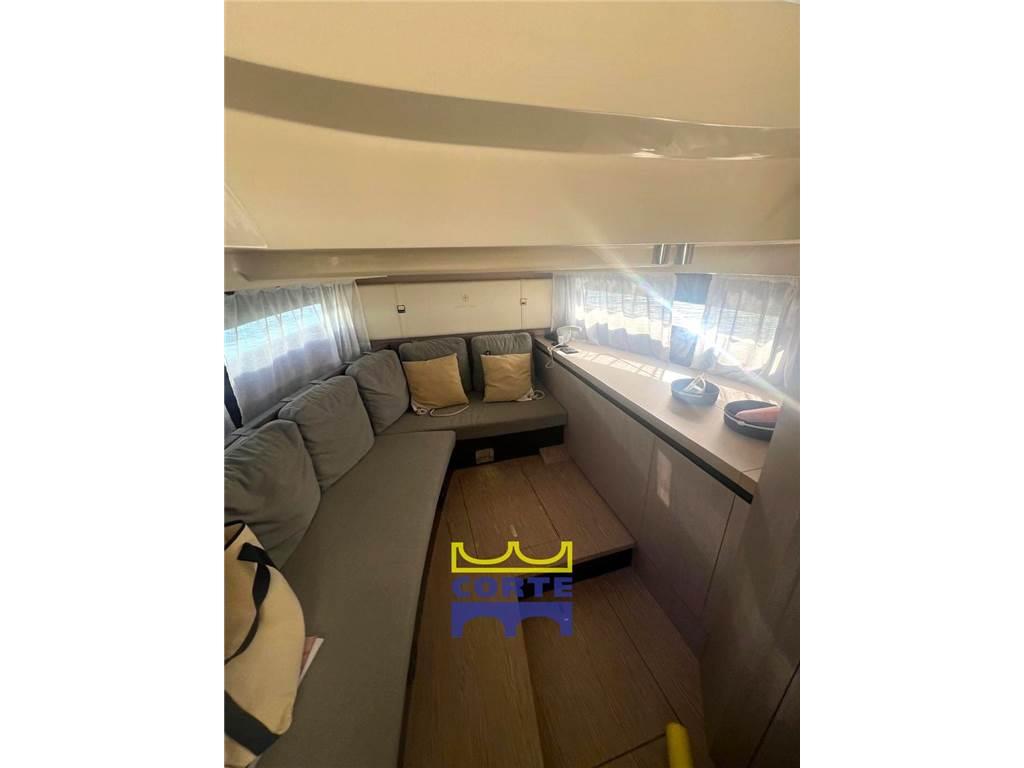 Notas internasAmpia dinette trasformabile, letto matrimoniale a poppa, bagno completo con doccia Notas de la instrumentaciónAncora, Autoclave, Batterie, Bussola, Caricabatterie, Computer di bordo, Contametri catena (elettrico), Display (10 Garmin con trasduttore), Doccia esterna, Ecoscandaglio, Elica di prua - bow thruster, Flap elettrici (Lenco), Gancio Traino per Sci Nautico, Hard top (in carbonio), Lavandino nel Pozzetto, Luci di cortesia, Piattaforma (plancetta in teak), Plotter, Pompa di sentina elettrica, Porta ingresso, Pozzetto Teak, Presa 220V banchina, Radio VHF (Garmin), Scaletta da bagno, Tavolo pozzetto (in teak), Winch ElettricoNotas de armamentoBoiler (elettrico), Cuscineria completa, Frigorifero interno (cabina 85 lt), Pavimento interno in legno, Prese interne 12v, Serbatoio Acque Nere, Stereo (Fusion), Telo copriconsolle, Telo coprisedile, WC marino elettrico, gancio traino sci, telo divano poppa, |