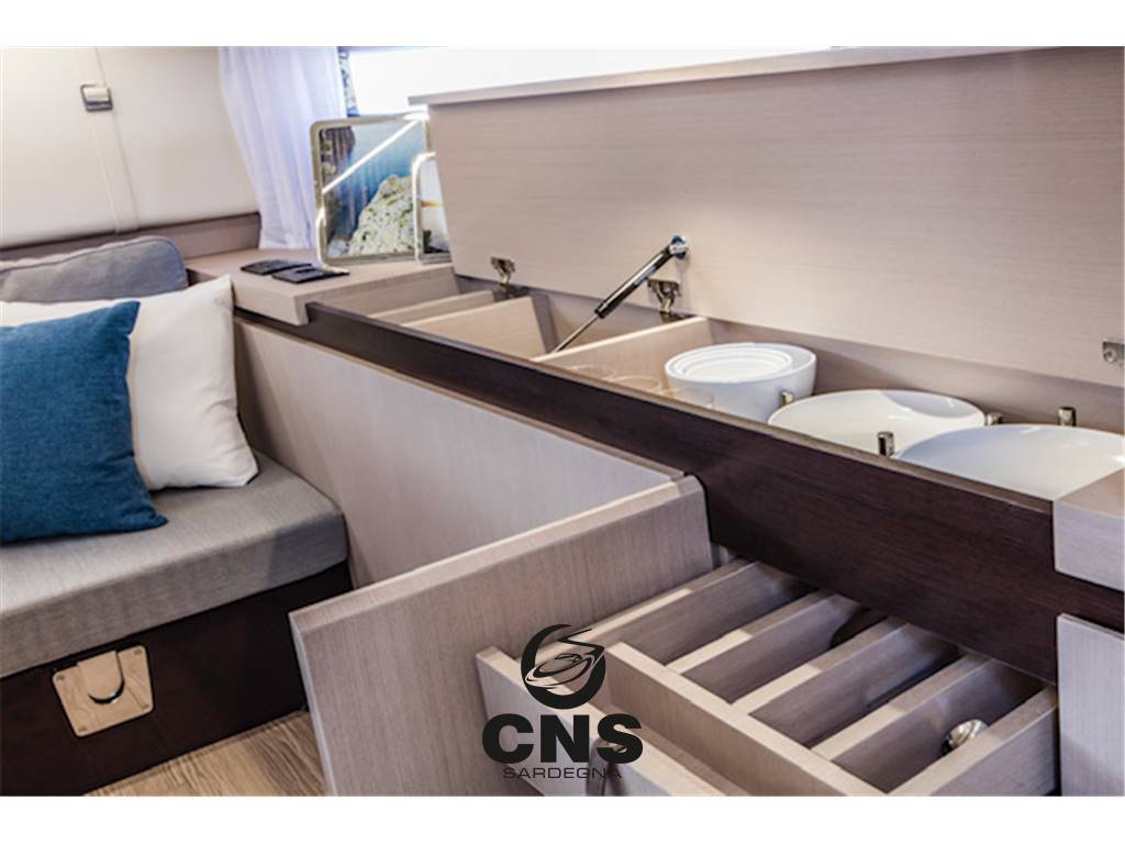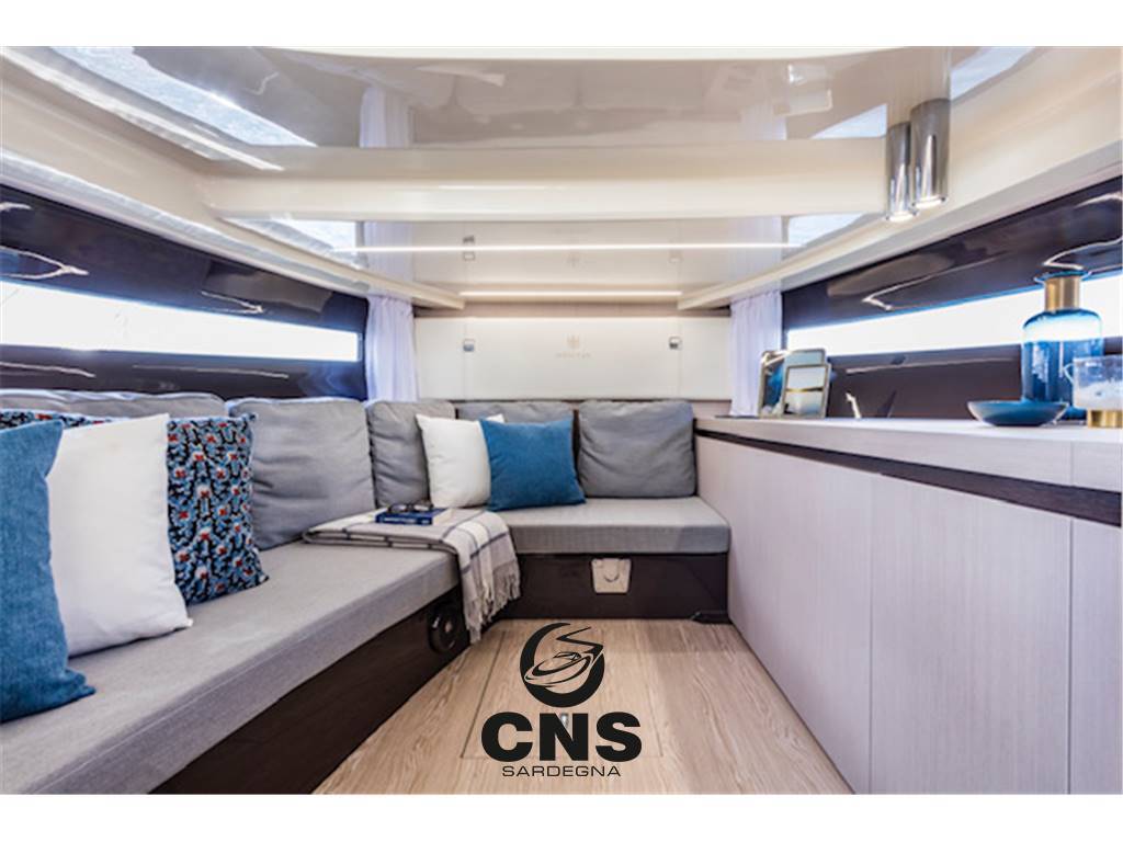 Notas internasCabina di poppa con letto matrimoniale completo di materasso, mobili con interruttori luci lettura e presa 230V, mobili in essenza, oblò apribili e illuminazione led. Bagno con porta e mobili in essenza, wc con lavaggio ad acqua dolce, doccia, lavello con miscelatore, presa 230V con protezione magnetotermica differenziale, carabottino pavimento doccia in essenza, doccino con saliscendi, faretti stagni a led, complementi d'arredo bagno, oblò apribile. Notas de la instrumentaciónPannello strumenti consolle, bussola, strumentazione motori digitale, indicatore livello carburante, pannello comando flaps, pannello comando verricello, pulsanti di comando impianti elettrici, interruttori azionamento manuale pompe sentina, presa 12V e comando radio. |