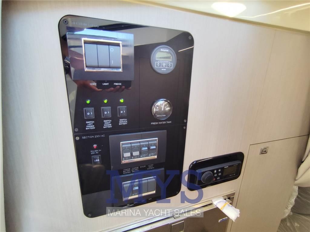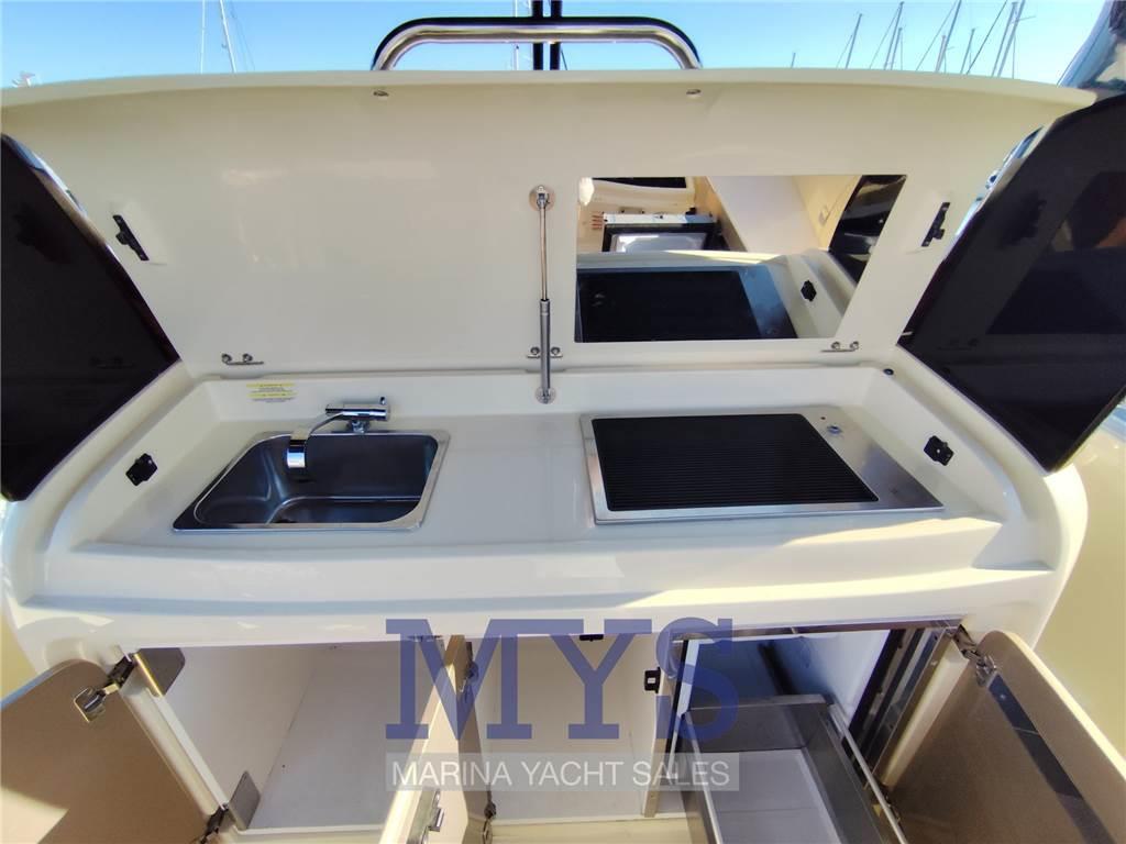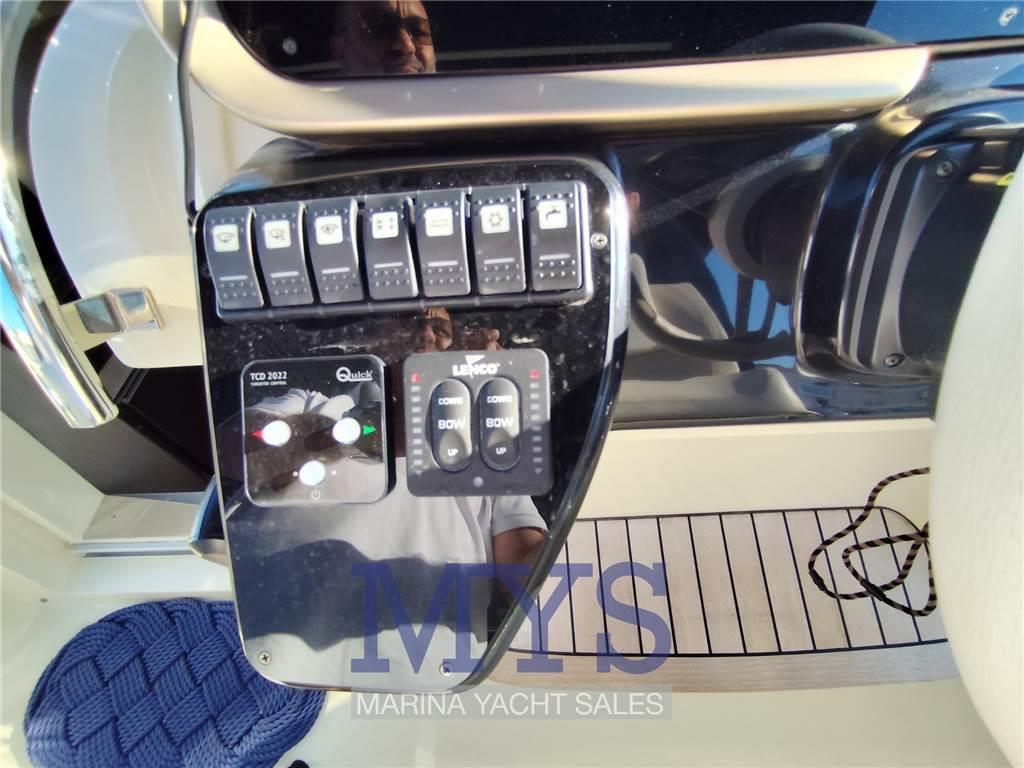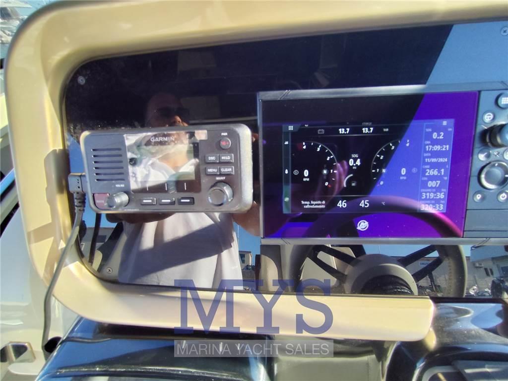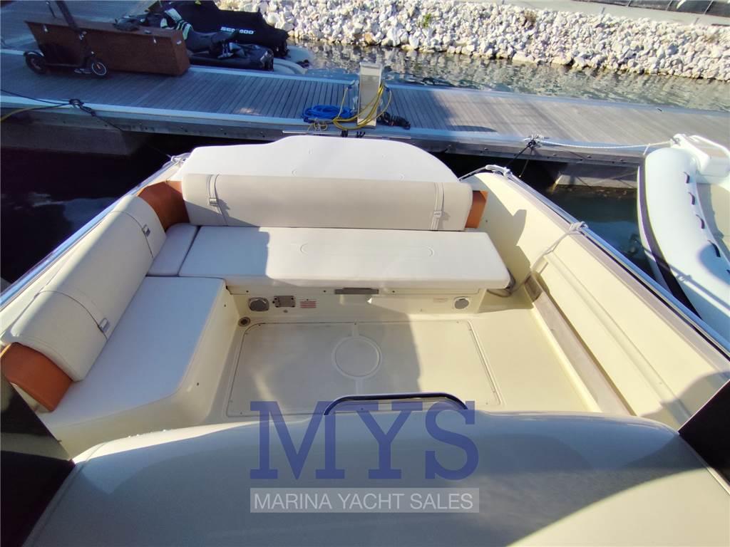 Notas internasDinette trasformabile in 2 posti letto Bagno separato con doccia, Wc elettrico e lavandino Letto matrimoniale a poppa Pavimento interno in legno Frigorifero interno Notas de la instrumentaciónBussolaGPS Comando motori elettronico Pilota automatico Elica di prua - bow thruster Flaps idraulici Indicatori Flaps VHF Salpancora Elettrico Presa 220V da banchina Caricabatterie 4 Batterie da 120Ah Prese interne 12 Prese interne 220v 4 Altoparlanti Stereo Cucina esterna con lavello, frigorifero e piastra elettrica Autoclave Boiler per l'acqua calda Serbatoio Acque Nere Notas de armamentoCuscineria di poppaCuscineria di prua Cuscineria Pozzetto Tavolo pozzetto T-Top Teli copri finestra Telo copriconsolle Tendalino Doccia esterna Piattaforma fissa |