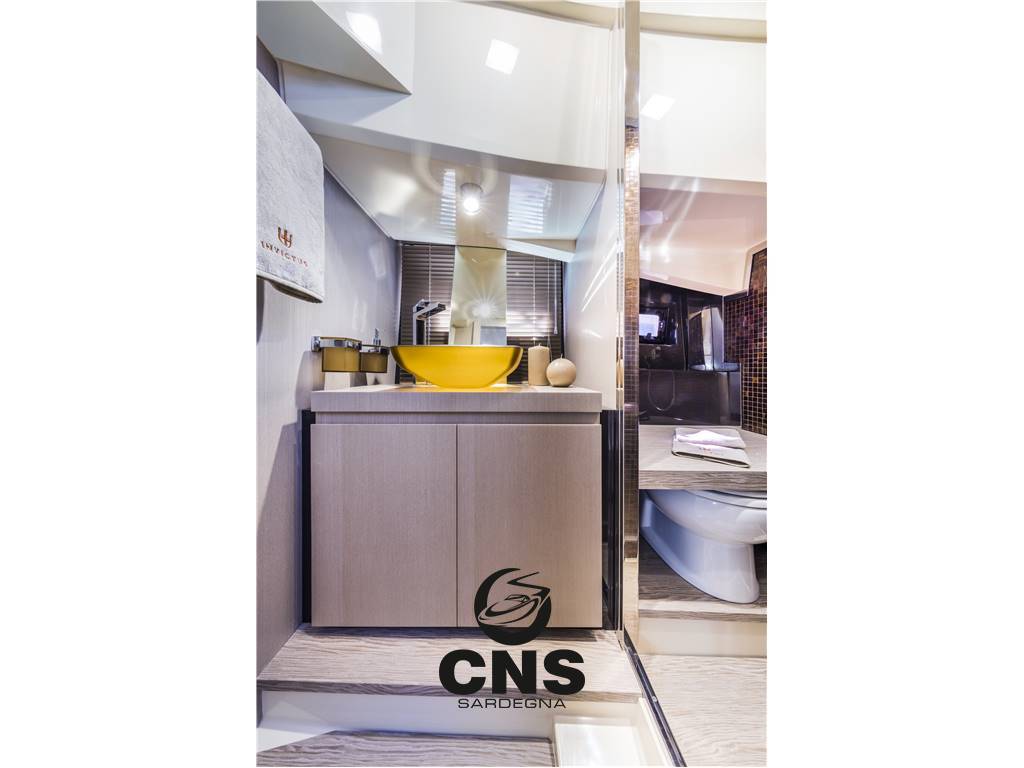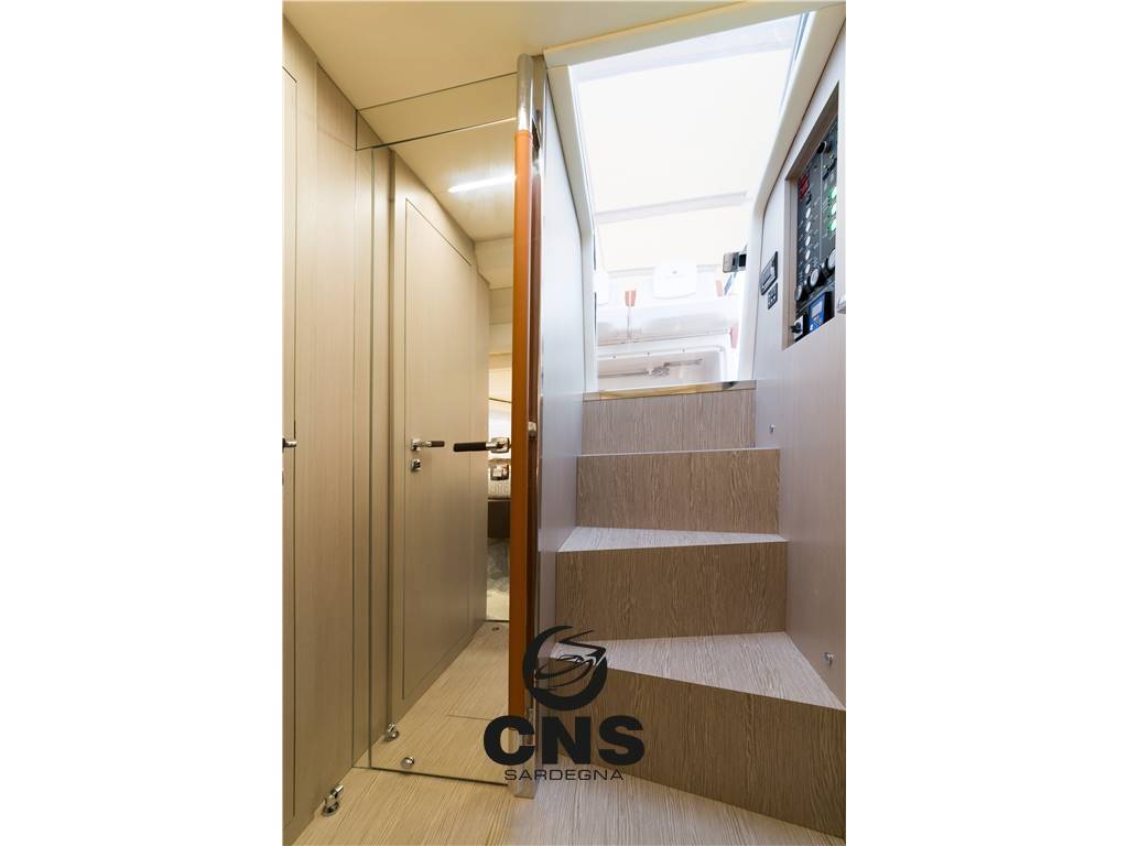 Notas internasCabina di poppa con letto matrimoniale completo di materasso e copriletto, comodino con interruttori luci lettura e presa 230V, porta e mobili in essenza, oblò apribili, illuminazioni led. Bagno con porta e mobili in essenza, wc con lavaggio ad acqua dolce, doccia, lavello con miscelatore, presa 230V con protezione magnetotermica differenziale, carabottino pavimento doccia in teak, doccino con saliscendi, faretti stagni led, complementi arredo bagno, oblò apribile. Notas de la instrumentaciónPannello strumenti consolle, bussola, strumentazioni motori, indicatore livello carburante, pannello comando flaps,pannello comando verricello, pulsanti di comando impianti elettrici, interruttori azionamento manuale pompe sentina, presa 12V, comando radio. |