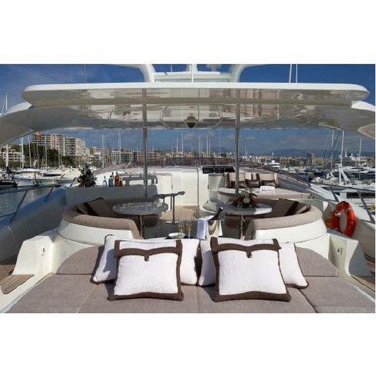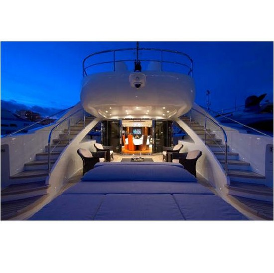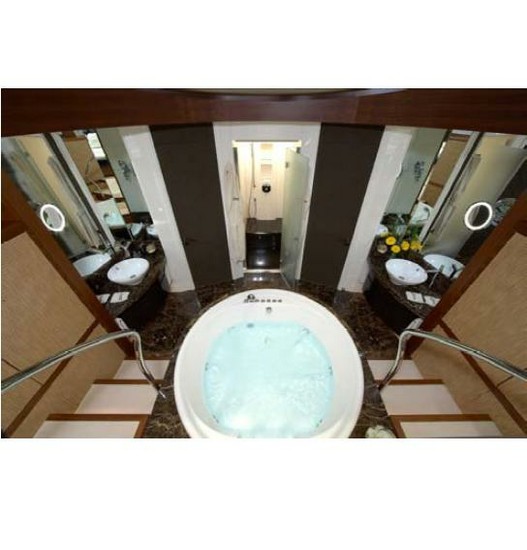 Notas de armamento-Caja de cambios i = ZF3060 de 2 x 1 x ZF3060-2.952 yo = 2.037 -Propulsión: 2 x 71SII KAMEWA agua chorros-1 x refuerzo KAMEWA jet 56BII -Ofertas: Castoldi Jet 16 ' -Motos acuáticas: 1xYAMAHA GP1300R