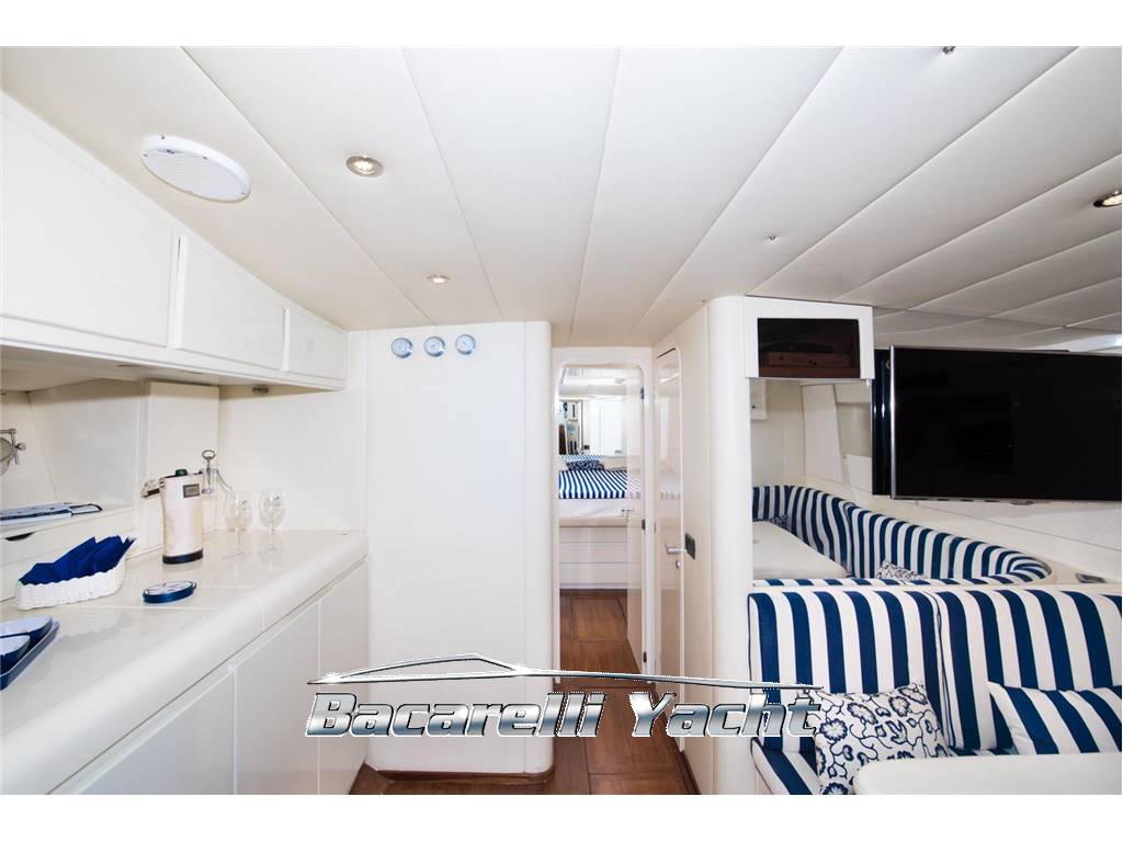 Notas internas1 cabina equipaggio. 1 cabina armatoriale a pura con letto matrimoniale e bagno 2 cabine doppie con letti a casterllo 2 bagni 1 ampia dinette con tavolo 1 cucina Notas de la instrumentaciónManette MTUGps Plotter angolo barra bussola magnetica Radio vhf passerella idraulica Generatore Dissalatore Notas de armamento2009: revisione totale motori ed invertitori, (officia autorizzata MTU)2010:sostituzione dissalatore,installazione rollbar,sostituzione totale prese di mare,rifacimento cabina equipaggio 2011: sostituzione parquet in massello,rifacimento pedana di poppa,sostituzione parabrezza,revisione comp.impianto elettrico. 2012:sostituzione assi e boccole. 2013:sostituzione eliche MK4,sostituzione passi d'uomo 2016:Revisione turbine ed iniettori,manutenzione strardi. ai motori 2018: Carena a zero,sostituzione tendalino, prendisole di prua |