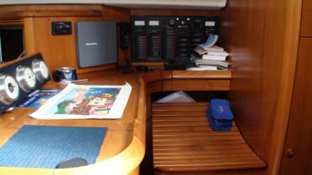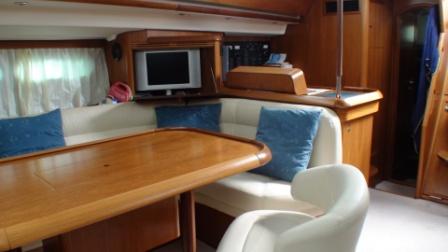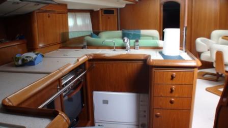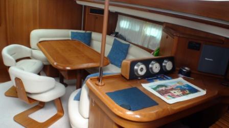 Notas internasProducida por Jeanneau junto con el arquitecto naval francés Jacques Fauroux, diseñador italiano Vittorio Garroni, dibuja un llamativo Yates de vela-54DS. Francobordo alto y un haz de máximo de casi 16 pies crean el volumen necesario para un interior espacioso verdaderamente. El resultado es un crucero de rendimiento elegante. Hay una amplia cabina almacenamiento, incluyendo un casillero de balsa dedicado que alberga una balsa tipo ligero de la valija y un armario de propano que contiene dos botellas. Espacio adicional locker está en cada asiento, y estos casilleros también proporcionan acceso a los sistemas de dirección. Interior es un aireado, espacioso salón con sillones suntuosos y elegantes sillas hizo una hermosa tabla teca a estribor y un mini bar al puerto. El equilibrio es de almacenamiento; un barco de 54 pies, almacenamiento sólo es adecuada, sobre todo teniendo en cuenta los voluminosos elementos passagemaking requiere. Niza toques incluyendo tonos abatibles, luces halógenas empotradas, excelente ventilación con 12 abrir las trampillas, laterales windows generales de luz natural y hasta una mesa de café handy contribuyan el ambiente general. La galera en forma de c es al puerto de la companionway, pero cuidado con el paso hacia abajo. No hay suficiente espacio de contador, más que en la mayorÃa de pequeños apartamentos, y está rodeada de un violÃn guapo. Los frigorÃficos/congeladores de grandes 12 voltios se pueden acceder desde la parte superior o a través de una puerta de carga frontal. Hay un microondas de acero inoxidable y un grabadora de cuatro Estufa/horno con una barra de accidente que también puede soportar un arnés. Almacenamiento de alimentos es taquillas fuera de borda, digno de tamaño, mientras que la cuberterÃa está alojada en cajones debajo del fregadero. La estación de navegación está enfrente de la galera. El asiento curvo mantiene el navegador sobre una quilla incluso cuando tacón. Un gráfico quebró una vez puede extenderse sobre la mesa de reciclamiento nav que también tiene un recorte de una computadora portátil. El cuadro eléctrico es fuera de borda, y hay espacio para repetidores. Un profundo locker húmedo se encuentra detrás de la sede de nav. Acceso a las baterÃas de casa está debajo de los entarimados entre la estación de galera y nav. El sistema eléctrico incluye ambos 12- y sistemas de 24 voltios (para el propulsor de proa y si se enciende la headsail enrrollador) y asà poder de orilla de 220 voltios. La mayor parte de la maquinaria pesada, el creador de agua, generador y tanques, está centrado sobre la quilla y coloca al mÃnimo posible. Notas de la instrumentaciónEquipo electrónico Raymarine gps chart plotter raytheon 398 color plus-radar antena Raymarine 48 mg. completo - piloto automático Raymarine-Raymarine instrumentos de viento-vhf icom-registro, navegación de sonidos de eco-pack electrónica-Hi-Fi-TV en el ancla de salón-arco propulsor eléctrico cabrestante en cabina-completa Raymarine instrumentos electrónicos, GPS plotter de gráfico Raytheon 398-plus Raymarine radar antena color-48 mg. - Raymarine piloto automático Raymarine instrumento de viento-VHF Icom-registro, navegación sonda electrónica pack-estéreo-TV en salón y mando oculto torno del arco eléctrico en la cabina -La instrumentación électronique Complète Raymarine GPS traceur graphique couleur Raytheon 398 plus Raymarine radar antenas-mg-48. Los instrumentos de pilote automatique-Raymarine à vent-VHF ICOM-loch, sonda-pack électronique de navegación-estereofónico-escamotable TV dans le salon-arco-treuil commande dans le cabina- Notas de armamentoanclaje más - Delta ancla con cadena de 100 m más - equipo de seguridad completo para 12 personas - Pasarela - tomar el sol - capota - toldos - productor de agua - 6 kw generador Onan - Bimini - licitación por 3 metros con 15 caballos de fuerza del motor Yamaha fuera de borda - Pack de lujo - mesa de bañera en teca - Vela de aparejos: vela mayor, spinnaker enrollador, estay tormenta con 2 juegos de velas - eje normal, tangón y aparejo estay de popa, ajustable, un cabestrante cubiertas electrónica, ducha de bañera -Anclaje: El. anclaje, ancla de Bower, cuerda de anclaje Stern, sala de máquinas de cadena: cargador de baterÃa, motor de baterÃa, baterÃa de servicio cocina y Cabañas: El horno, receptor,. refrigerador, platos, hojas, agua caliente, mantas, Pilows & fundas, toallas, estufa de Gas Amarres: cubierta & locker: cuerdas, segundo ancla, 50 m de largo, corto, mediano 30 10 m. En cubierta: Guardabarros, Radar reflector, Windex, gángster pasillo, vela principal Full batten, tabla de cabina, Roll Génova, Bildge bomba/manual, motor fuera de borda, brújula, velocÃmetro + eco-sonar, Bimini, volante, verdadero banderas croatas, viento indicador de dirección/el, verdadera ducha de cubierta, piloto automático, ligera Salón: Nav-conjunto clave de control de extintores de incendios, documentos del barco, lámpara de bolsillo, radio VHF, cuerno de niebla, Baromether/termomether, instrucción libros, 12 V Socket, GPS chartplotter, binoculares, cinturones salvavidas, Bouy luz Socket 220 V, 12 V, guÃas náuticas de mano reflector, reproductor de CD, de primeros auxilios kit, cartas de navegación 1 + 2, cohetes de señales, cable de extensión Locker popa: ligera bomba, Schore conexión 220V, palanca de bomba Bildge, cubo con una cuerda, remos, aceite de Motor, pincel y spunge, embudo de combustible, botellas de Gas, agua bombona de combustible de manguera, barco gancho, WC: ducha, ducha drenar bomba, pinceles de WC, bombas, herramientas de agua caliente & piezas de repuesto: propulsor de la bomba de agua frÃa, cinta aislante, baterÃas de repuesto, Presidente de mástil, caja de herramientas, kit de reparación de la embarcación, Winch maneja Plus-ancre guindeau Delta 100 m de chaîne avec plus-' équipement de sécurité complet pour personnes 12-pasarela-b