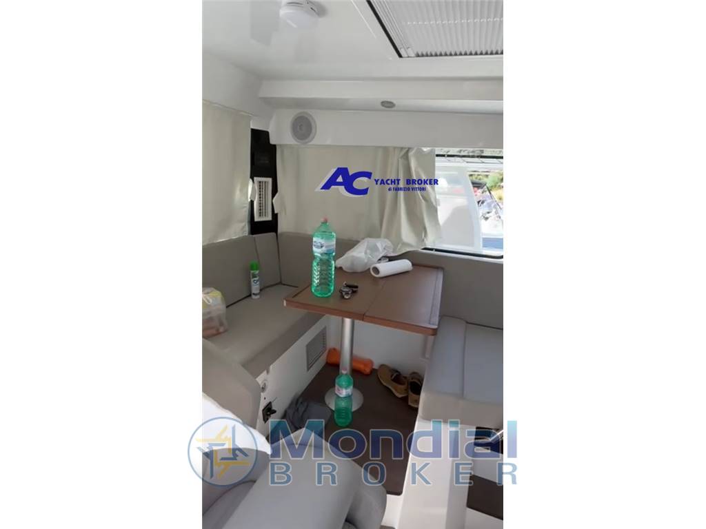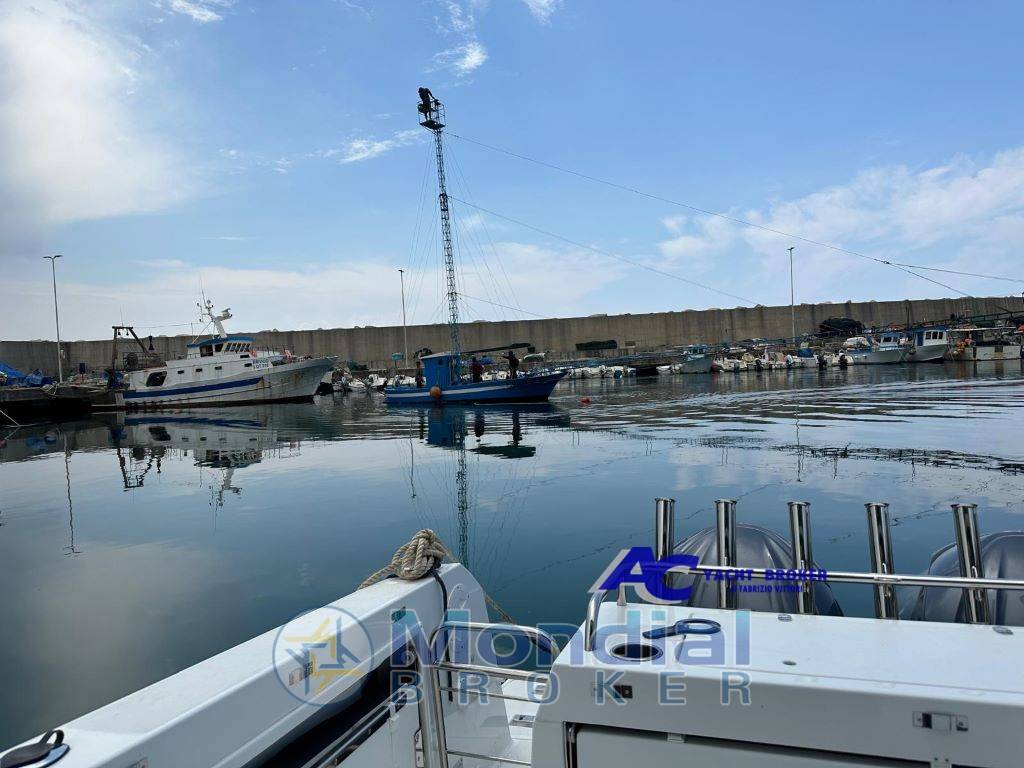 Notas internasNotas de la instrumentaciónCabina con letto a V trasformabile in matrimoniale, cabina ospiti doppia, bagno separato con doccia, dinette trasformabile, cucina con piano cottura a 2 fuochiNotas de armamentoGeneratore da 3.5 Kw. (diesel), aria condizionata caldo/freddo, elica di prua, boiler, autoclave, verricello elettrico, stabilizzatore Zip Wake, tuna door, pedana di poppa con scaletta bagno, flaps con indicatori, cuscineria prendisole completa prua e poppa, tendalino prua e poppa, faro orientabile, vasca del vivo, manette elettroniche, cover motori Yamaha, impianto 220 V con caricabatterie, frigo, n.07 portacanne |