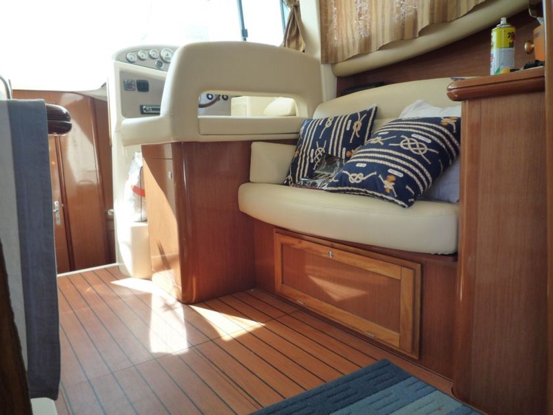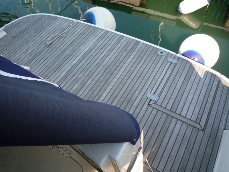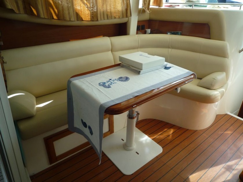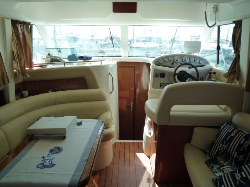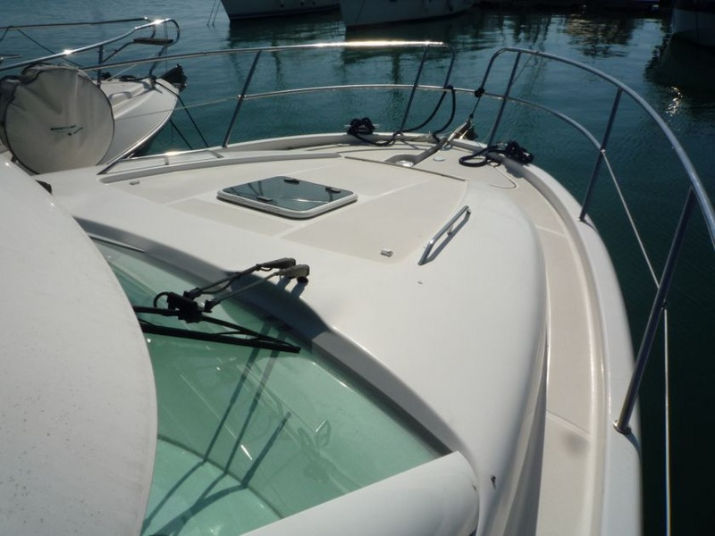 Notas internasInterni in perfette condizioni con rifiniture e mobili in mogano chiaro, divani in ski crema e pavimento dinette in listoni di legno mogano chiaro con fuga d' acero e moquette in yuta nelle camere - Ampio a luminoso disimpegno per accedere con 3 scalini al ponte inferiore dove troviamo ... - la Cabina matrimoniale a prua con porta , con letto staccato e comodo armadio guardaroba, cassettiere - Bagno privato con wc elettrico , ripiano e lavabo con miscelatore e doccia - Seconda cabina ospiti a poppa con porta e con unico grande e comodo letto matrimoniale, con gavoni x stivaggio e comodo piccolo ripostiglio a murata dx - - A murata dx l' angolo cucina attrezzata con lavello completo di miscelatore e fornello a tre fuochi a gas ,frigo 30 lt. , Forno della sharp , pensili, e dispensa di buone dimensioni + altro mobile Al ponte superiore: Ampie finestrature in coperta e laterali rendono molto luminosa ed ampia la dinette composta da un comodo divano a 4 sedute in ski color beige con comodo sportello in legno ricavato sotto la seduta e dal tavolo rettangolare in ciliegio abbattibile - A dritta secondo divano a 2 posti in ski color beige con comodo sportello in legno ricavato sotto la seduta - A parete sopra il divano troviamo il quadro elettrico con stereo cd ed altoparlanti - Timoneria con doppio divano e consolle con copriconsoll- Esternamente: - Pozzetto in teak con doppia seduta a poppa ricoperta con cuscini in Ski amovibile e ampi gavoni - Scala di accesso al fly con gradini ricoperti inteak e luci di cortesia - Portello di accesso alla sala macchine - Scalini accesso ai passavanti - A prua ampio prendisole in ski beige - Piccolo ma completo Fly con doppia seduta e piccolo prendisole + bimii inox abbattibile - Porta di accesso dalla plancetta al pozzetto - plancetta bagno allungata e ricoperta in compensato Teak con scalletta bagno - Petit vol élégant design classique et des lignes épurées, mais avec une superstructure importante. A l'intérieur, un carré, une petite cuisine, deux cabines et une salle de bains. Un vrai plaisir, un trésor rare. Bienvenue à bord de la Prestige 32, un navire qui reflète fidèlement la signification de son nom, les rêves de luxe et de stimuler des endroits exotiques. Jeanneau Prestige 32 a mis au point pour une mise en page plus large et plus spacieuse, que ce que vous trouverez généralement dans un bateau à moteur traditionnel. La gamme Prestige est créé uniquement par les meilleurs spécialistes dans la conception des bateaux, Garroni Designers. En étroite collaboration avec l'équipe de conception qui est responsable pour les coques ensemble de créer des lignes, incorporer des matériaux modernes et de forger de nouvelles formes de bateaux à moteur Jeanneau. Projet, JD / Garroni. Intérieur en bon état avec une finition claire et meubles en acajou, des canapés et dinette crème de ski plancher planches d'acajou lumière de bois d'érable a, d l'écart »et de tapis de jute dans les chambres - un grand hall lumineux avec 3 étapes pour accéder à la plate-forme inférieure, où nous ... - La cabine avant avec double porte, avec une armoire individuelle et double confortable, commode - Salle de bain privée avec WC électrique, tablette et lavabo avec robinet mélangeur et douche - Deuxième arrière de la cabine d'hôtes avec porte et avec un grand lit double et à l'aise avec casiers de stockage x et pratique petite pièce de rangement au côté droit - - Une zone fortifiée dx 'une cuisine équipée avec évier avec mélangeur et cuisinière à gaz à trois brûleurs, réfrigérateur 30 l. , Le four forte, armoires, garde-manger de la bonne taille + autres meubles Sur le pont supérieur: Grande terrasse et les fenêtres latérales, il est très lumineux et le siège se compose d'un grand canapé confortable avec 4 places assises avec un bois confortable de ski beige porte de sous le siège et la table pliante rectangulaire en cerisier - Une deuxième année consécutive canapé 2 places en ski beige avec de confortables recettes de portes en bois sous le siège - Un mur au-dessus du canapé sont le coffret avec CD stéréo et haut-parleurs - Console de pilotage avec canapé-copriconsoll Extérieurement: - Cockpit en teck avec biplace à l'arrière recouverte de coussins et de grands casiers à skis amovible - Stairway to fly avec marches couvertes inteak et les lumières de courtoisie - Trappe d'accès à la salle des machines - Marches d'accès au passavant - Une grande terrasse à l'arc de ski beige - Fly Petit mais complet avec double siège et des chaises pliantes en acier + petits bimii - Porte d'accès à partir de l'arrière à l'habitacle - Plate-forme de baignade prolongée et recouvert de contreplaqué salle de bain en teck échelle de bain, Notas de la instrumentaciónInstrumentación electrónica esencial:-Color Chartplotter Gps Lowrence x 25 para indicador de brújula-bar Fly-Fishfinder-analógico -mando de alerones -echo sonar, -Imp..Radio, estéreo cd comando elica di prua-vhf-analógica y digitales indicadores hacen para administrar las luces barco-Tv antena glomex -esposas electrónicas -instrumentos de analógico a parámetros de control de moscas y temperatura agua y aceite-plataforma-inversor la instrumentación électronique est essentiel: -GPS traceur Lowrence nuancier x 25 pour la mouche -Profundidad Sounder Boussole - Analogique -Indicateur de barra De comando des volets-profundidad más sólida -Imp.lecteur CD radio estéreo, -Le contrôle participó en hull -VHF Analogiques et Indicateurs numériques pour les espions de gestion navire -Antena TV Glomex -Manettes électroniques -Instrumentos mosca analogiques pour les m de contrôle et de la température d ' un moteur et huile de l ' Eau -"À quai" -Onduleur Notas de armamentoCaldera, cocina, soláriums, cocina, nevera Interior, chaquetas, instalaciones de agua negra, microondas, 12v, 220v de Sockets interno interno, estéreo, lona, cubierta de a