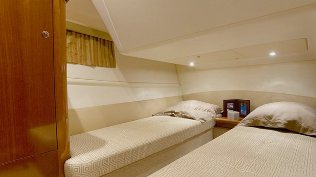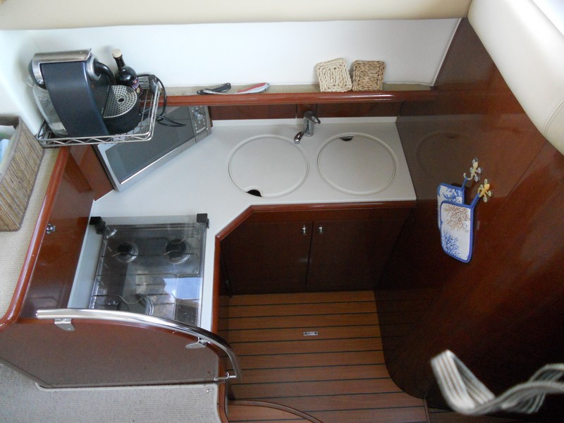 Notas internasCama doble camarote pennisula en el arco, cabina de huéspedes con dos camas en el piso en el centro del barco. Un amplio baño con ducha doble puerta. Amplio living comedor con sofá, C a la derecha con mesa central convertible en cama de matrimonio, tenemos otro sofá con dos cómodas plazas. Bajando dos pasos a la izquierda encontramos la amplia y funcional cocina equipada con todo lo necesario Notas de la instrumentaciónGPS plotter raymarine C 70, piloto automático raymarine ST 6002, raymarine Fishfinder St. 40, vhf, compás, controles electrónicosNotas de armamentoPasarela hidráulicaHélice de proa Comedor TV y dvd en comedor Estéreo con Cd Alfombra desmontable Microondas Cubierta de lona habitáculo Portadas de acristalamiento exterior Ducha al aire libre en plataforma de baño Molinete eléctrico Amortiguadores al aire libre |