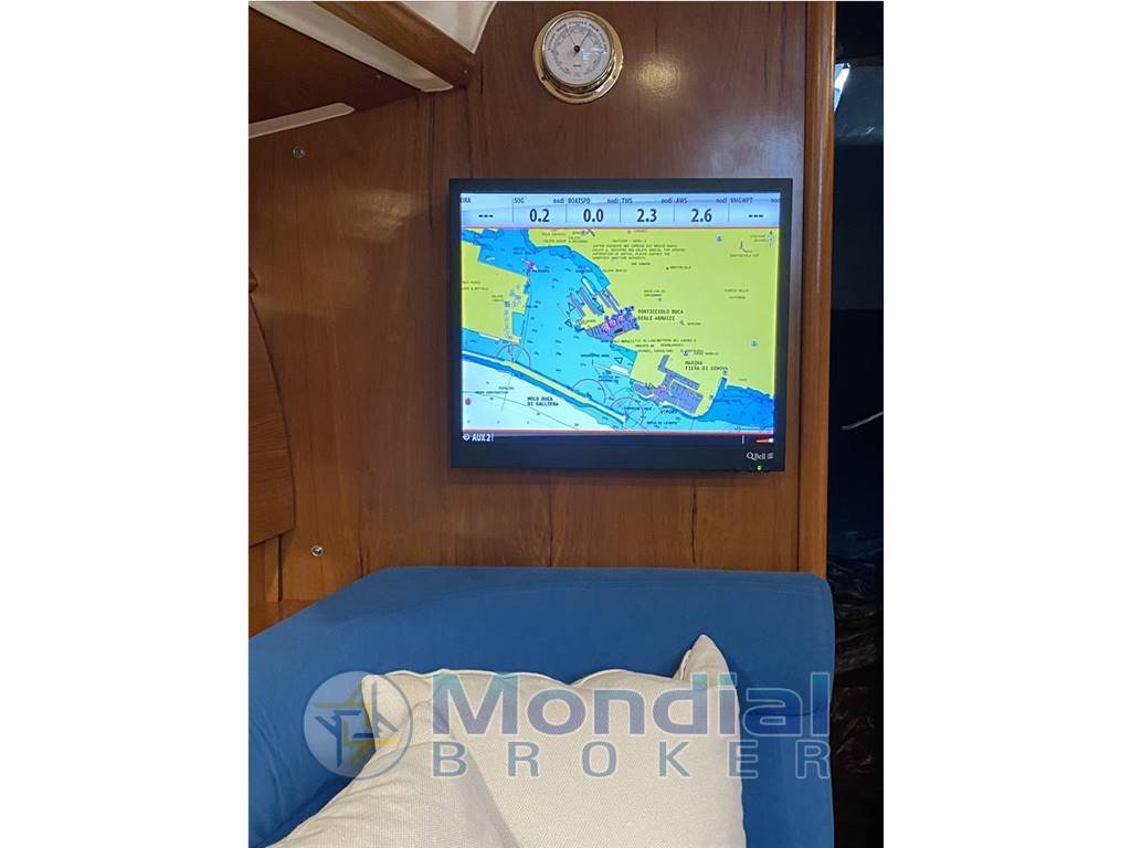 Notas internasNotas de la instrumentaciónGPS cartografico con 2 schermi, interno ed esterno, da 15" Simrad NSO - Radar Simrad 4G Broadband - AIS Simrad A150 classe B transcriver - Navtex con pc dedicato per lettura dati - Sonic Hub Media device Doc - Radio Simrad RD 68 -Radio Raymarine Ray 101E - ecoscandaglio e stazione vento Raymarine - eperb.Notas de armamentoDissalatore 60 lh - 2 pannelli solari su bimini top - inverter 1000 watt - due autoclavi - spry hood - tavolo pozzetto - maniglia elettrica per winch - boiler 220+ scambiatore - tendalino x pozzetto - tender con fuoribordo - lenzuola su misura - sartie spiroidali "dyform" del 2017 - passerella in carbonio -corredo velico: randa steccata su carrelli - genoa avvolgibile - genoa avvolgibile ragata - gennaker con bompresso in carbonio - code 0 su frullino . |