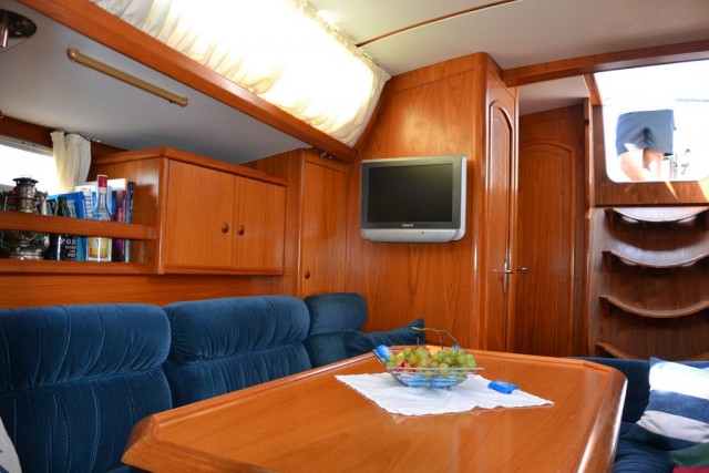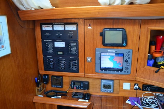 Notas internasNotas de la instrumentaciónElectrónica Raymarine 2009: 2xChartplotter E80 (carteggio + bien), Gps Raystar 125, Tridata + herramienta gráfica pantalla ST60 Wind, Radom 2Kw, piloto automático w/Gyro S3; Navman Gps/Plotter, Vhf Explorer 710DSC (2009), divisor de antena para AIS (2009). BaterÃa control Nasa, regulador del alternador DAR12 (2009), cargador de baterÃa digital 240V, 80A, mayor voltaje del alternador 12/220, comienzo baterÃa 100Ah baterÃa nueva 2009 + 3 nuevo 2011 x100Ah servicios.Notas de armamentoMolinete eléctrico, ancla Bruce 20 kg, 60 m cadena 10 mm. Caldera, 19â € Lcd Tv + Dvd, Radio/Cd/Mp3 USB y online (2009). Capota, de Bimini nuevo 2011, cabina altavoces, mesa de bañera, ducha al aire libre, licitación soporte c/popa. Sloop, Rullafiocco 2006, Rullaranda, spinnaker auge 2009 Spi; 2006 enrrollador de Génova, mayor enrollable, Spinnaker 2009. |