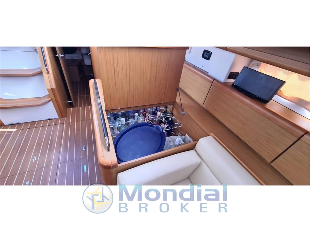 Notas internasCalavele a prua. Cabina armatoriale a prua con letto matrimoniale centrale, vanity desk e bagno privato con lavabo, wc e doccia separata; Due cabine doppie a poppa; Bagno accessibile dal quadrato, con wc, lavabo e doccia. Cucina a L a destra e zona dinette con ampio divano a C e tavolo fisso con vano portaoggetti centrale. Piano cottura a gas, frigorifero, freezer, forno e microonde. Tavolo carteggio rivolto in avanti a sinistra, mobile bar, divano a murata.
