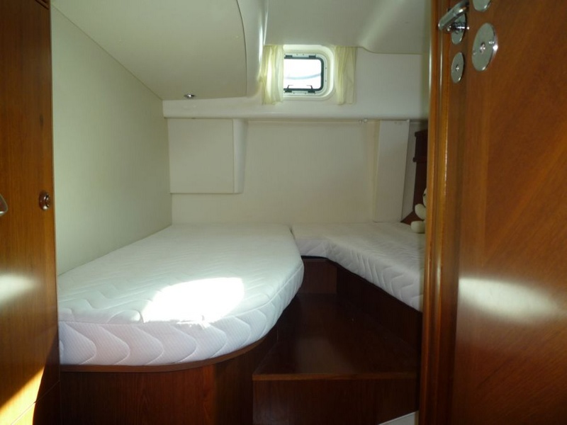 Notas internasIntérieur très belle et classique avec des meubles en bois poli et crème, cerise fina tapicerÃa, forjados en acajou avec un espace d ' érable» et en canapés cuir blanc-versión 3 cabinas: cabine avant avec lit double et salle de bain privée avec douche séparée-cabinas lits jumeaux avec invités à l ' arrière et tripulación avec salle de bains-salle de séjour avec cocina en canapés cuir de chaque salle de bains avec douche séparée-Cabañas blanc et complète avec cuisinière électrique, micro-ondes, tripulación avec salle de bain privée à l ' Avant extrême réfrigérateur-Cabañas. Producida por Jeanneau junto con el arquitecto naval francés Jacques Fauroux, diseñador italiano Vittorio Garroni, dibuja un llamativo Yates de vela-54DS. Francobordo alto y un haz de máximo de casi 16 pies crean el volumen necesario para un interior espacioso verdaderamente. El resultado es un crucero de rendimiento elegante. Hay una amplia cabina almacenamiento, incluyendo un casillero de balsa dedicado que alberga una balsa tipo ligero de la valija y un armario de propano que contiene dos botellas. Espacio adicional locker está en cada asiento, y estos casilleros también proporcionan acceso a los sistemas de dirección. Interior es un aireado, espacioso salón con sillones suntuosos y elegantes sillas hizo una hermosa tabla teca a estribor y un mini bar al puerto. El equilibrio es de almacenamiento; un barco de 54 pies, almacenamiento sólo es adecuada, sobre todo teniendo en cuenta los voluminosos elementos passagemaking requiere. Niza toques incluyendo tonos abatibles, luces halógenas empotradas, excelente ventilación con 12 abrir las trampillas, laterales windows generales de luz natural y hasta una mesa de café handy contribuyan el ambiente general. La galera en forma de c es al puerto de la companionway, pero cuidado con el paso hacia abajo. No hay suficiente espacio de contador, más que en la mayorÃa de pequeños apartamentos, y está rodeada de un violÃn guapo. Los frigorÃficos/congeladores de grandes 12 voltios se pueden acceder desde la parte superior o a través de una puerta de carga frontal. Hay un microondas de acero inoxidable y un grabadora de cuatro Estufa/horno con una barra de accidente que también puede soportar un arnés. Almacenamiento de alimentos es taquillas fuera de borda, digno de tamaño, mientras que la cuberterÃa está alojada en cajones debajo del fregadero. Este grandes yates, Jeanneau buque insignia de la flota, representa la forma más lograda de la arquitectura innovadora. Concebido por dos diseñadores de grandes yates, Jacques Fauroux para el lado de rendimiento y Vittorio Garroni para el aspecto de la comodidad y proyecto administrado por la oficina de diseño de Jeanneau, el Sun Odyssey 54DS ofrece una experiencia de navegación diseñado para dar una nueva dimensión a sus cruceros, ya sea corto o largo plazo. Notas de la instrumentaciónCompleta instrumentación electrónica de Raymarine repite doble timonera: color Plotter Gps Raymarine C120-radar antena Raymarine 48 mg. - piloto automático Raymarine ST 60 instrumentos de viento Raymarine ST - Tridata Raymarine ST 600-Raymarine VHF con DSC-log, Ecosonda-electrónicos de navegación pack-estéreo-TV en el salón arco propulsor eléctrico comando molinete en cabina-3 tornos eléctricos de 400 vatios a 24 v.-tv sistemas eléctricos molinete con el aplazamiento en la caseta del timón -La instrumentación electrónica Complète Raymarine doble répétée dans la timonerie: ventilación GPS traceur couleur Raymarine C120 tableau antenas de radar de Raymarine-48 mg-Pilote automatique Raymarine ST 60-ST instrumentos à Raymarine-Raymarine Tridata ST 600-Raymarine VHF con DSC-loch, sonda-pack. électroniques à la navegación-Stereo-TV escamotable dans le salon-le contrôle du propulsor de Hull-guindeau électrique dans le cabina-3 winchs électriques de 400 vatios 24 v-Les instalaciones de TV-Guindeau électrique avec référence même dans la timonerie - Este grandes yates, Jeanneau buque insignia de la flota, representa la forma más lograda de la arquitectura innovadora. Concebido por dos diseñadores de grandes yates, Jacques Fauroux para el lado de rendimiento y Vittorio Garroni para el aspecto de la comodidad y proyecto administrado por la oficina de diseño de Jeanneau, el Sun Odyssey 54DS ofrece una experiencia de navegación diseñado para dar una nueva dimensión a sus cruceros, ya sea corto o largo plazo. Notas de armamentoCappottina paraspruzzi e bimini pozzetto tutto in tela blu - randa e fiocco avvolgibili con rolla randa e rolla fiocco Bamar - Strallo di prua - Cuscinerie complete per le sedute del pozzetto - elica di manovra a prua - passarella idraulica telescopica Opecmar - doppia timoneria - pozzetto e coperta in teak - verricello elettrico con comando a prua e in pozzetto - dotazioni di sicurezza complete per 12 persone - ancora delta con catena maggiorata - plancetta bagno e scalini di risalita in pozzetto in teak. Scala Bagno, Plancia Di Poppa, Elica Abbattibile, Elica Di Prua, Passerella, passavanti In Teak, Ponte In Teak, Bussola, Log, Ecoscandaglio, Strumenti Del Vento, Vhf, Gps + Plotter, Radar, Pilota Automatico, Televisione, Stazione Barometrica, Autoclave, Batterie, Raddrizzatore , Caricabatterie, Frigo, Riscaldamento, Boiler, Cucina Forno, Pompa Sentina,Vang Rigido, Avvolgifiocco, Attrezzatura Mps, Maniglie Winces, Cuscini Prendisole, spray hood, Bimini Top, Dotazione Di Sicurezza complete , avvolgifiocco elettrico,albero e boma laccati bianchi,bompresso gennaker, randa e genova maggiorati in kevlar,gennaker,randa e genoa standard,elica max prop,wc elettrici ,tutta la strumentazione doppia e ripetuta, motore insonorizzato - salpancora maggiorato - ancora con 100 mt catena maggiorata - - passerella idraulica - cuscineria prendisole - sprayhood - tendalini - bimini - tender vtr da 3 metri con motore fuoribordo da 15 cv - kit lusso - tavolo in pozz