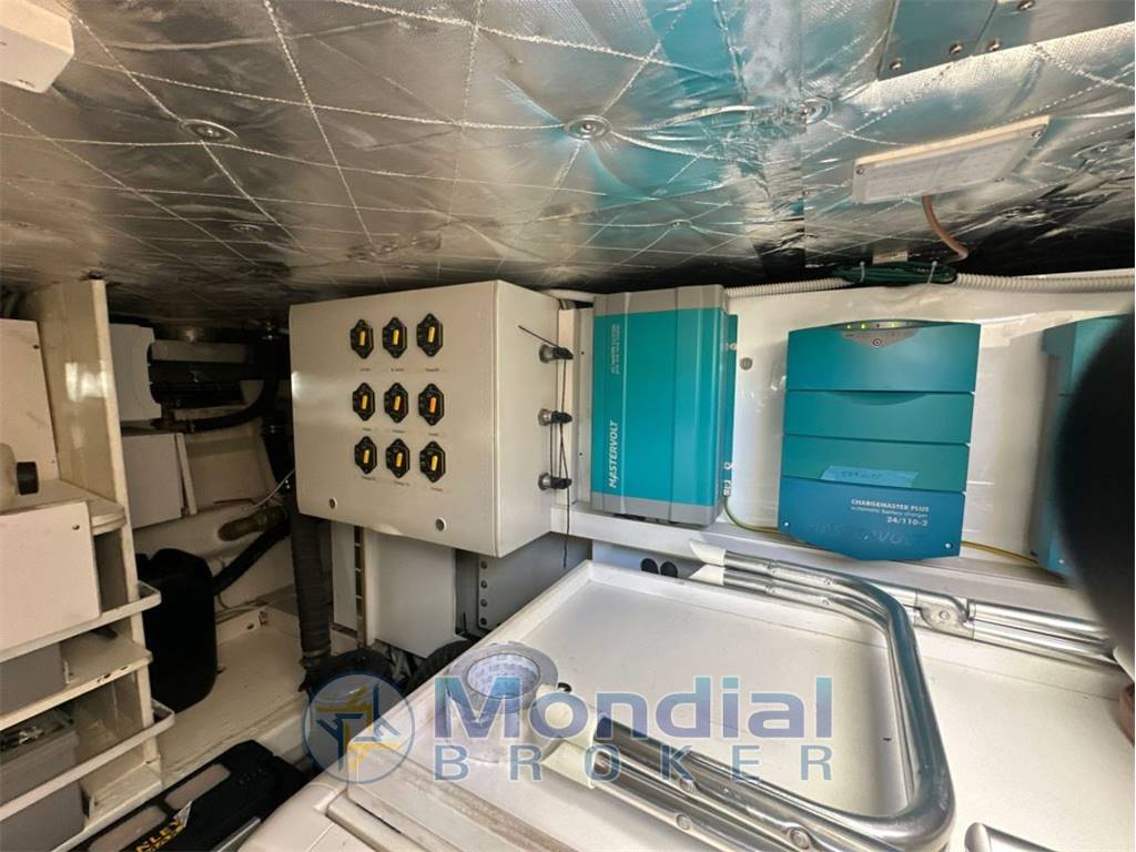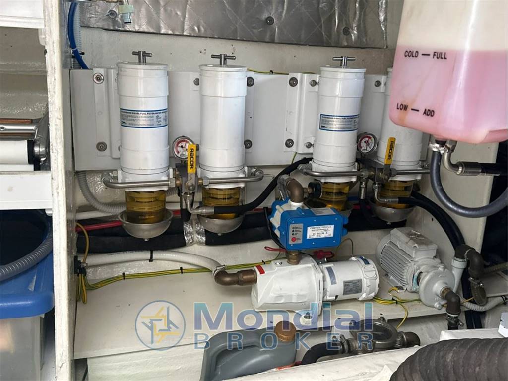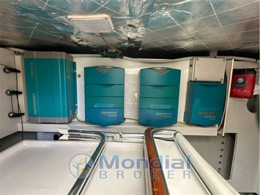 Notas de la instrumentaciónAria condizionata – N.2 Plotter Furuno TZT3 12? – Radar Furuno 36 NM – Autopilota Raymarine ST602 – VHF con DSC Ray 240E – Antenna TVSAT Navisystem 48 – Generatore Kohler 17 Kw ore 1000 – Dissalatore Osmosea Evo 100 ore 65 – Piattaforma bagno subacquea – Doppio verricello di poppa a scomparsa – Passerella idraulica Besenzoni a scomparsa – Elica di prua – Fabbricatore ghiaccio – Frigorifero in pozzetto