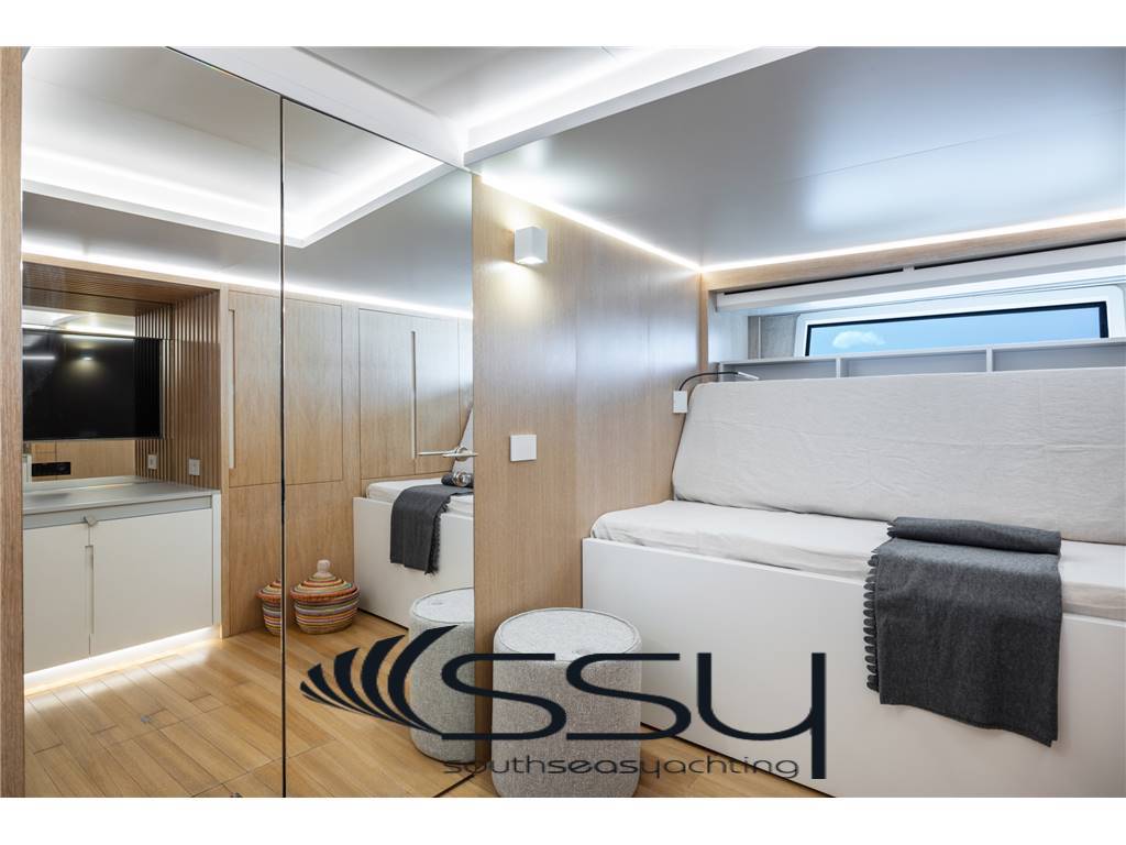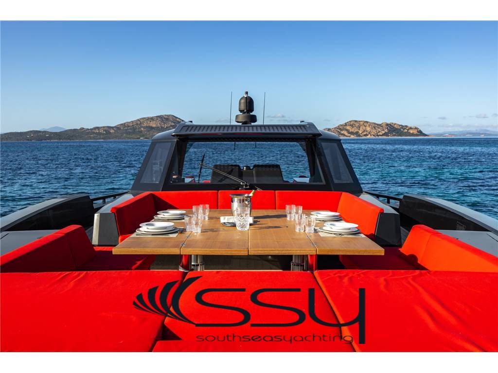 Notas internasCABINA ARMATORE: - una suite armatoriale a tutto baglio con letto king-size con materasso e stivaggio con accesso dall'alto, pavimento in teak (Comilegno spessore 10mm), luci spot a led Quick Marine, impianto audio Bose 2.1, impianto A/C Condaria e bagno privato con box doccia separato. CABINA OSPITI: - cabina ospiti a tutto baglio con 2 letti gemelli trasformabili in divani + 3° letto a scomparsa, pavimento in teak (Comilegno spessore 10mm), luci spot a led Quick Marine, smart TV 42'' Samsung, impianto audio Bose 2.1, aria condizionata Condaria e bagno privato con box doccia separato. CABINA EQUIPAGGIO: - Cabina doppia separata per l'equipaggio a prua, pavimento in teak (Comilegno spessore 10 mm), luci spot led Quick Marine, A/C Condaria, impianto audio Condaria e bagno privato con box doccia. SALONE / CUCINA: - Sedile pilota per 3 persone; - Frigorifero Vitrifrigo (sottoscala) lt. 230 + 2xVitrifrigo Frigo lt. 62 + Vitrifrigo DW100BTX Freezer lt. 62; - Hoshizaki Ice maker + winecooler; - Cucina a induzione Gaggenau + forno elettrico Gaggenau, lavello in acciaio inox e lavastoviglie Samsung; - 2 divani a L contrapposti con 2 tavoli telescopici espandibili, smart Tv Samsung 55' a scomparsa; - luci spot a led Quick Marine, impianto di climatizzazione con 5 fancoil Condaria, pavimento in teak (Comilegno spessore 10mm). PONTE di COPERTA: - Grandi prendisoli a poppa e a prua con bimini di prua con pali in carbonio, altoparlanti stereo 8xJL SPS M600; - Garage idraulico per tender con Williams 325 Turbo Jet; - Transformer idraulico Opac Mare. MIAMAI's interior configuration has been designed to comfortably accommodate up to 6 guests in 2 cabins consisting of: OWNER’S CABIN: - a full-beam master suite with King-size bed with mattress and storage with access from above, teak flooring (Comilegno 10mm thick), spot led lights Quick Marine, audio system Bose 2.1, A/C system Condaria and private bathroom with separate box shower. GUEST CABIN: - amisdships full beam guest cabin with 2 twin beds convertible in sofas + 3rd foldaway beds, teak flooring (Comilegno 10mm thick), spot led lights Quick Marine, smart TV 42’’ Samsung, audio system Bose 2.1, A/C system Condaria and private bathroom with separate box shower. CREW CABIN: - Separate bow crew twin cabin, teak flooring (Comilegno 10mm thick), spot led lights Quick Marine, A/C system Condaria, teak flooring (Comilegno 10mm thick) and private bathroom with shower. SALOON / GALLEY: - Pilot seat for 3 people; - Vitrifrigo Fridge (under stairs) lt. 230 + 2xVitrifrigo Fridge lt. 62 + Vitrifrigo DW100BTX Freezer lt. 62: - Hoshizaki Ice maker + winecooler; - Gaggenau induction stovw + Gaggenau electric oven, stainless steel sink & Samsung dishwasher; - 2 opposite L sofas with 2 telescopic expandabe tables, foldaway up/down Samsung smart Tv 55’; - spot led lights Quick Marine, air Conditioning system with 5 fancoils Condaria, teak flooring (Comilegno 10mm thick). MAINDECK: - Aft & bow large sunbed with bow bimini with carbon poles, 8xJL Stereo Speakers SPS M600; - Hydraulic tender garage with Williams 325 Turbo Jet; - Opac Mare hydraulic trasnformers. Notas de la instrumentaciónVHF Garmin 300:Garmin AIS 800; 2xMultifunction display GARMIN GPSMAO 8416; Digital Fish Finder Garmin GSD24 with transducer and speed sensor; Radar GMR Fantom 18,40 W 48 mn; Autopilot Garmin GHC 20; 2xMan Engine instruments display; Control panel for surface transmissions, JDM with interceptor; Oleodynamic Stern thrusters Lewmar 300TTH with double propeller; Hydraulic bow thruster with Joystick, LEWMAR 300 TTH. Notas de armamentoELECTRIC & HYDRAULIC EQUIPMENT:- 2xgyroscopic Seakeeper 9 stabilizers; - Seakeeper Sevcon PFC inverter 5Kw/2Kw; - Generator Cummis Onam 27 MDKDU-8127° 50Hz/220V (1220 h 10/2024); - 4x230Ah 12v Engine batteries + 6x200Ah 12v service batteries; - Battery cut-off switches in Pilot Console; - Battery charger 24v + inverter Mastervolt; - Shore Power Marinco 63Amph; - main generator with ON/OFF control by PLC; - Condaria PCWM/VAR 30002 A/C system reverse cycle 120000btu; - Opacmare hydraulic transformer (swimming ladder & passerella); - Touch screen for supply control and yacht management by PLC; - Shenker 150 Modular watermaker 24V; - Deck courtesy lights (48) on sidewalks, QUICK Lighting; - Electronic fresh water pump, 24v+230v, CEM GDE-MG/3; - Self-priming 24v bronze pump, for bilge service, Gianneschi type 040; - Self-priming 230v bronze pump, for fire/washing service, Gianneschi type 050; - 2xGianneschi 30/2-230V + 2x30/2 – 24V reversible blowers for engine room ventilation; - 3xIsotherm stainless steel boilers 230V (40lt + 40lt + 16lt) M basic series. AUDIO & VISUAL EQUIPMENT: - WIFI network with router 4G/LTE connection; - TV Sat Antenna KVH Trac Vision M5; - Music & TV Wifi control and internet predisposition; - Touch screen for supply control and yacht management by PLC; - Marine-grade professional stereo system, JL Audio + Ipad to manage by AirPlay; - Samsung 55’’ (saloon) + Samsung 42’’ smart TV + sat receivers; GALLEY EQUIPMENT & LAUNDRY: - Vitrifrigo Fridge (under stairs) lt. 230; - 2xVitrifrigo Fridge 62lt + Vitrifrigo DW100BTX Freezer 62lt; - Hoshizaki Ice maker + winecooler (30 bottles); - Gaggenau induction stove + Gaggenau electric oven; - stainless steel sink & Samsung dishwasher. DECK EQUIPMENT: - tender Garage with oleodynamic rams, JDM; - Williams 325 Turbo Jet; - Custom handrail amidships; - Seasmart hinges, in anodised aluminium with Maori Yacht logo; - Custom Seasmart handles, in anodised aluminium; - Hard top in composite fibers; - Windscreen wiper, Gallinea; - Extractable stern shower, Zazzeri; - Manual fore awning with fabric cover and Seasmart 4 carbon fiber poles; - Trefoil Stainless steel AISI 316 50kg anchor, roll for chain cable, safety snap shackle and cam jam; - Stainless steel chain 12mm, 100mt DIN766/ISO; - Anchor launching system with hydraulic folding arm with waterproof control; - Anchor windla