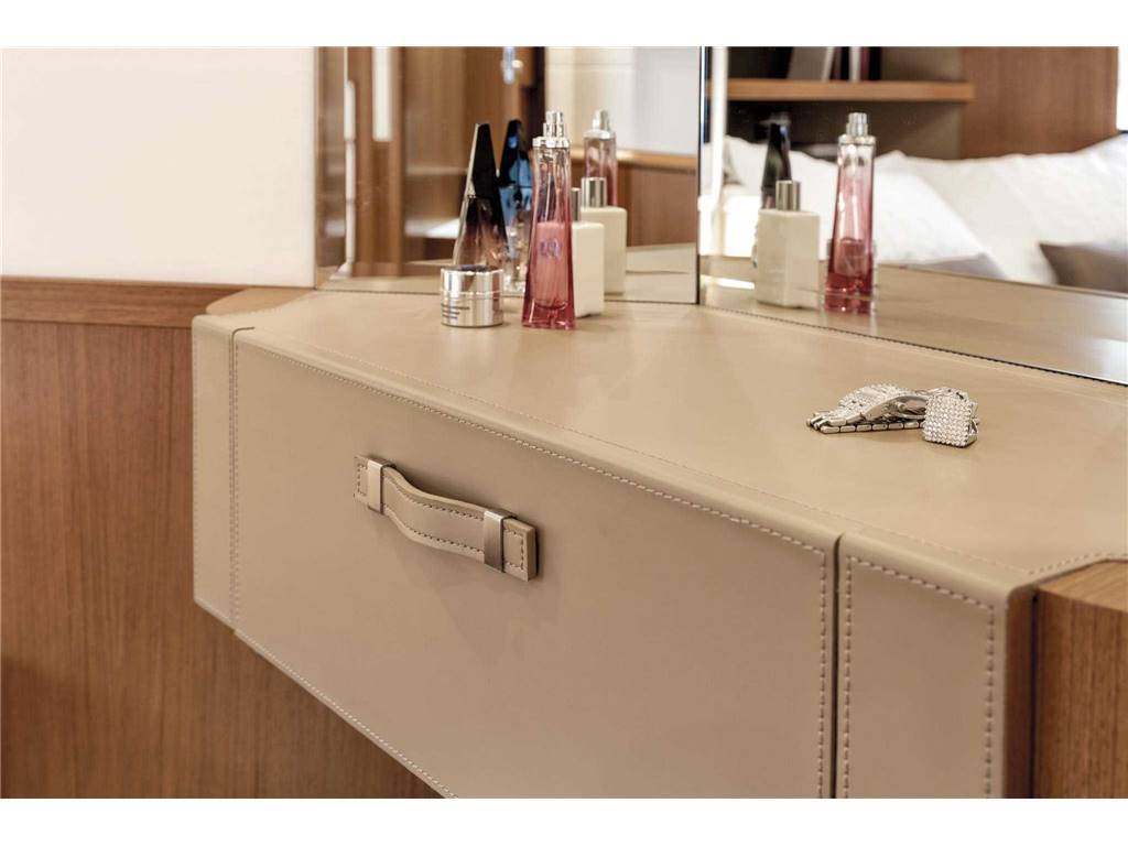 DOMUS è l'ultimo modello del cantiere Mochi , firmato da Brunello Acampora dello Studio Victory Design. Abbina la forma armoniosa e performante dello scafo al tipico gusto nautico degli interni, con il classico teak Dolphin abbinato a soluzioni d'arredo e design contemporanee. La caratteristica estetica più impressionante è il volume maggiorato della sovrastruttura, con il generoso flybridge che si estende sopra il pozzetto. Dal pozzetto, arredato con un grande tavolo in teak e un comodo divano ¿form¿ con schienale ribaltabile, una porta scorrevole in vetro conduce al ponte principale. Il salone è un unico spazio suddiviso in zone giorno, pranzo e timoneria, mentre la cucina è una zona completamente separata. A prua, a dritta, si trova la rinnovata plancia di comando. Il ponte inferiore presenta spazi sensibilmente riorganizzati. La cabina armatoriale si trova a centro barca e dispone di un lussuoso bagno privato a tre aree. Le nuove soluzioni progettuali coinvolgono l'arredo così come il layout: il legno massello è abbinato a dettagli in pelle. |