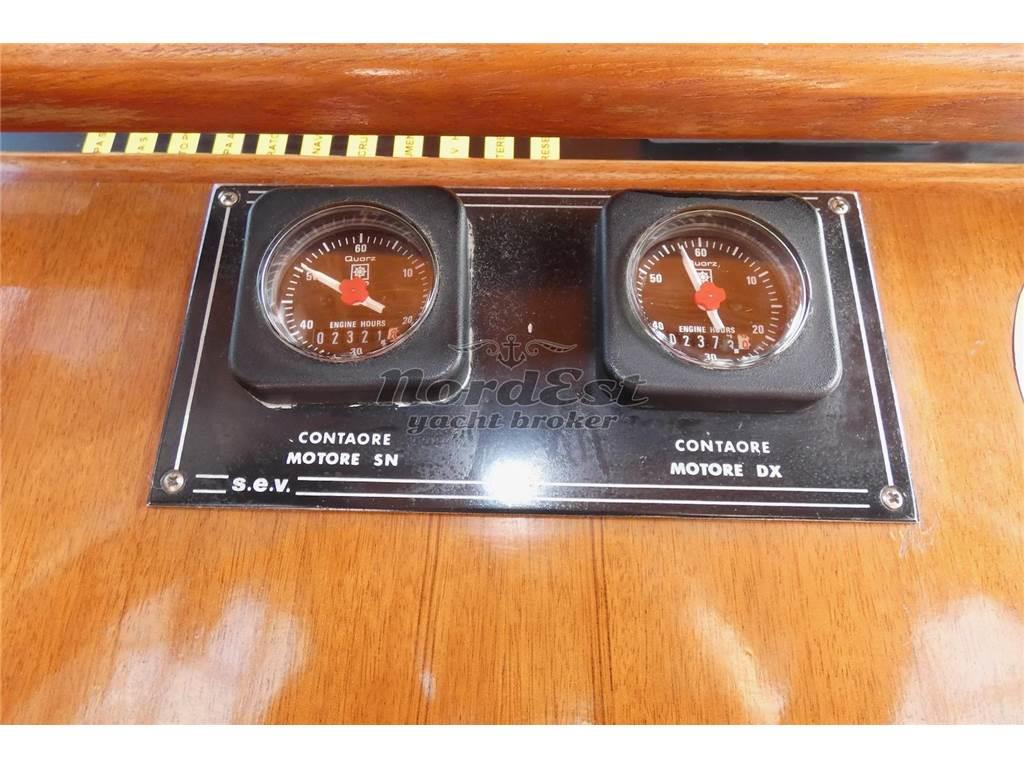 Notas internasInterni: DESCRIZIONE INTERNI Ampi spazi interni. Due cabine, un bagno. Mobilio classico, in legno massello. Cucina attrezzata. ----- Impianto stereo Impianto TV Bagni: 1 Cabine: 2 Posti letto: 4+2 Cucina Frigorifero Notas de la instrumentaciónPilota automatico: Sperry 20 Ecoscandaglio: Presente GPS: Presente Radar: Presente Vhf: Presente Notas de armamentoDESCRIZIONE IMPIANTISTICA Pannelli solari, condizionatore aria, teak rifatto nuovo pozzetto, interni migliorati, pinne stabilizzatrici laterali, allungamento plancetta di poppa, Elica manovra di prua, Doccia esterna, Cuscinerie sole, Frigoriferi n.2, Webasto, stereo ----- Cuscineria prendisole Elica di manovra a prua: Presente |