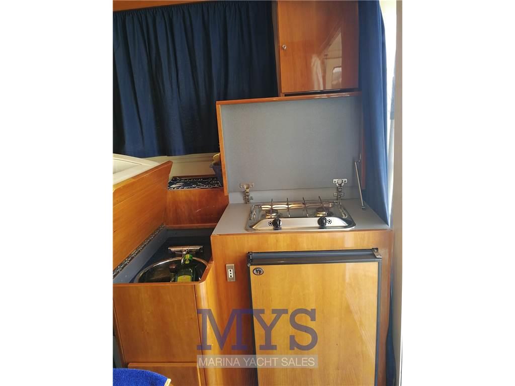 Notas internas1 Cabine a prua con letto matrimoniale 1 Cabine ospiti a centro barca con due letti sovrapposti 1 bagno con wc elettrico e doccia Dinette trasformabile con tavolo da pranzo e divani Cucina con due fuochi a gas, frigorifero interno e frezeer Notas de la instrumentaciónBussolaComando motori elettronico Contamiglia Ecoscandaglio Lawrance HBS5 con trasduttore in bronzo passante Flaps idraulici GPS Lawrance HBS5 GPS Interfase Chart Mastr 7MX Manette elettroniche (2 postazioni) Radio VHF Intek Batterie 1x100Ah per servizi + 2x100Ah per i motori Caricabatterie nuovo del 2021 Victron Energy - BT - Blue Smart IT22 Charge 12/30 (3) Luci di cortesia Presa 220V da banchina Presa acqua da banchina Salpa Ancore Elettrico - 3 postazioni Prese interne 12v Prese interne 220v DvD Impianto TV - predisposizione Radio AM/FM Stereo Blaupunkt Santa Cruz CD31 Frigorifero interno Autoclave Boiler per l'acqua calda Impianto acque nere - predisposizione Notas de armamentoAncora Danforth 10 kg. + 100 mt di catenaRollbar Cuscineria completa Teli copri finestra Telo copertura Fly Tendalino Tuga in teak Pozzetto Teak Tavolo pozzetto Doccia esterna Piattaforma Scaletta da bagno 2018 rifatto tendalino Fly 2020 tagliando completo motori, revisione impianto idrico, sostituzione batterie, revisione salpa ancora con pulsantiere esterne nuove. 2021 sbarco e lavaggio completo serbatoi carburante, sostituzione pompa gasolio dx, caricabatterie nuovo. 2023/2024 Sostituito alternatore motore sx Sostituite cinghie alternatore entrambi i motori Sostituiti cavi leve comandi Sostituite idrotenute assi passanti, Sostituzione tubi scambiatore motore sx Carena gennaio 24 Accessori aggiunti: VHF fisso Televisore dinette, Condizionatore portatile Finto Teak spiaggetta e pozzetto, Sostituiti legni chiusure fly e Gavone spiaggia, Tendalino estivo e cagnaro invernale con cristal sui tre lati che va a creare un altro vano nel pozzetto Messa in funzione faro da pesca motorizzato Sostituzione prese accendisigari con usb, posa di staffe porta sup esterno murata, |