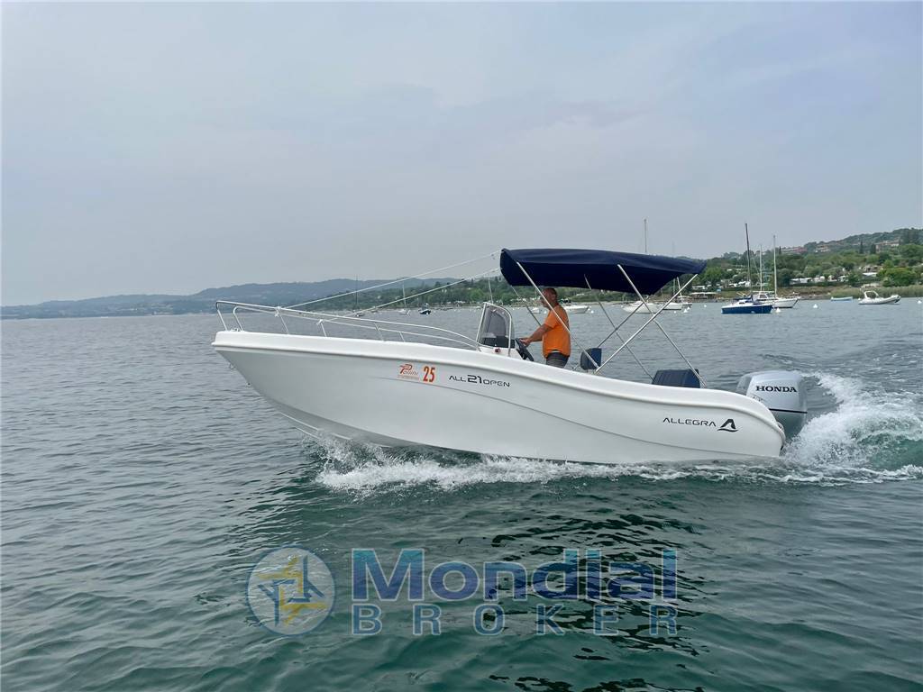 Notas internasCantiere e modello: Nautica Allegra – 21 open Lunghezza: 6,30 mt Larghezza: 2,45 mt Anno: 2018 (motore 2006) Motore: fuoribordo HONDA 130 cv - Benzina Portata: 8 persone Spaziosa barca open con console centrale. Ampio lettino prendisole di prua, sponda alta ideale anche per famiglie con bambini piccoli.